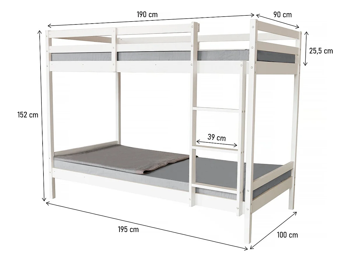 Lit Superposé bois enfant "Lionel" 90 x 190 cm - Blanc