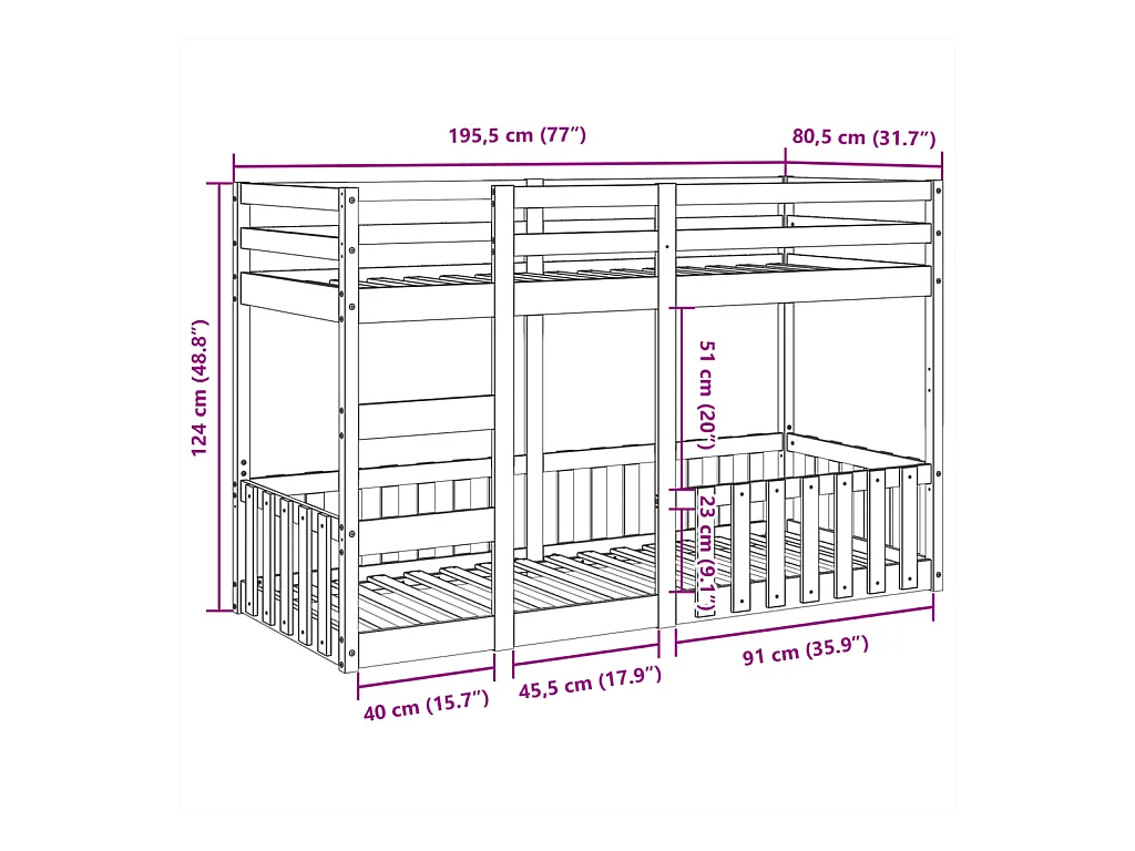 Lit superposé avec toit 75x190 cm bois de pin massif
