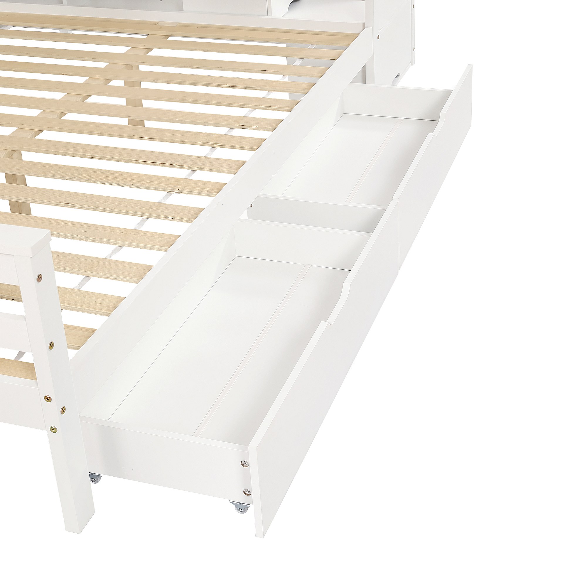 Le lit superposé peut accueillir plusieurs dormeurs et dispose de 2 tiroirs sous le lit pour un espace de rangement supplémentaire pour les objets du quotidien. Une petite étagère à côté du lit supérieur offre un espace de rangement pour les petits jouets et fournitures.