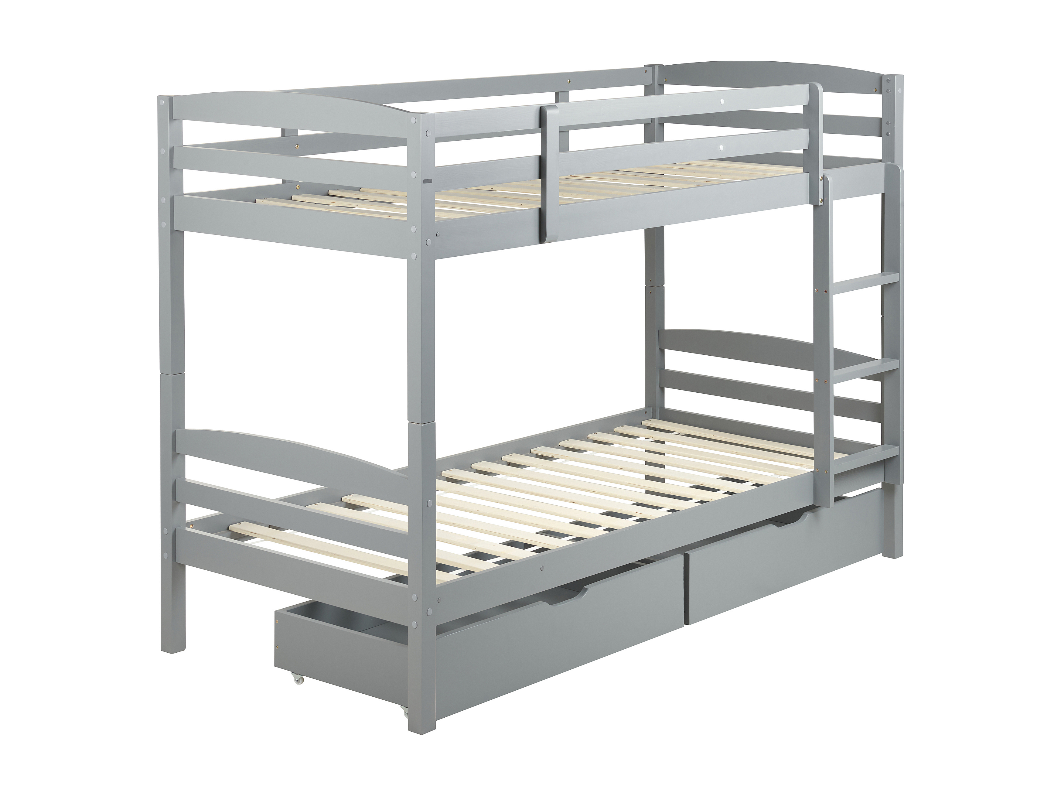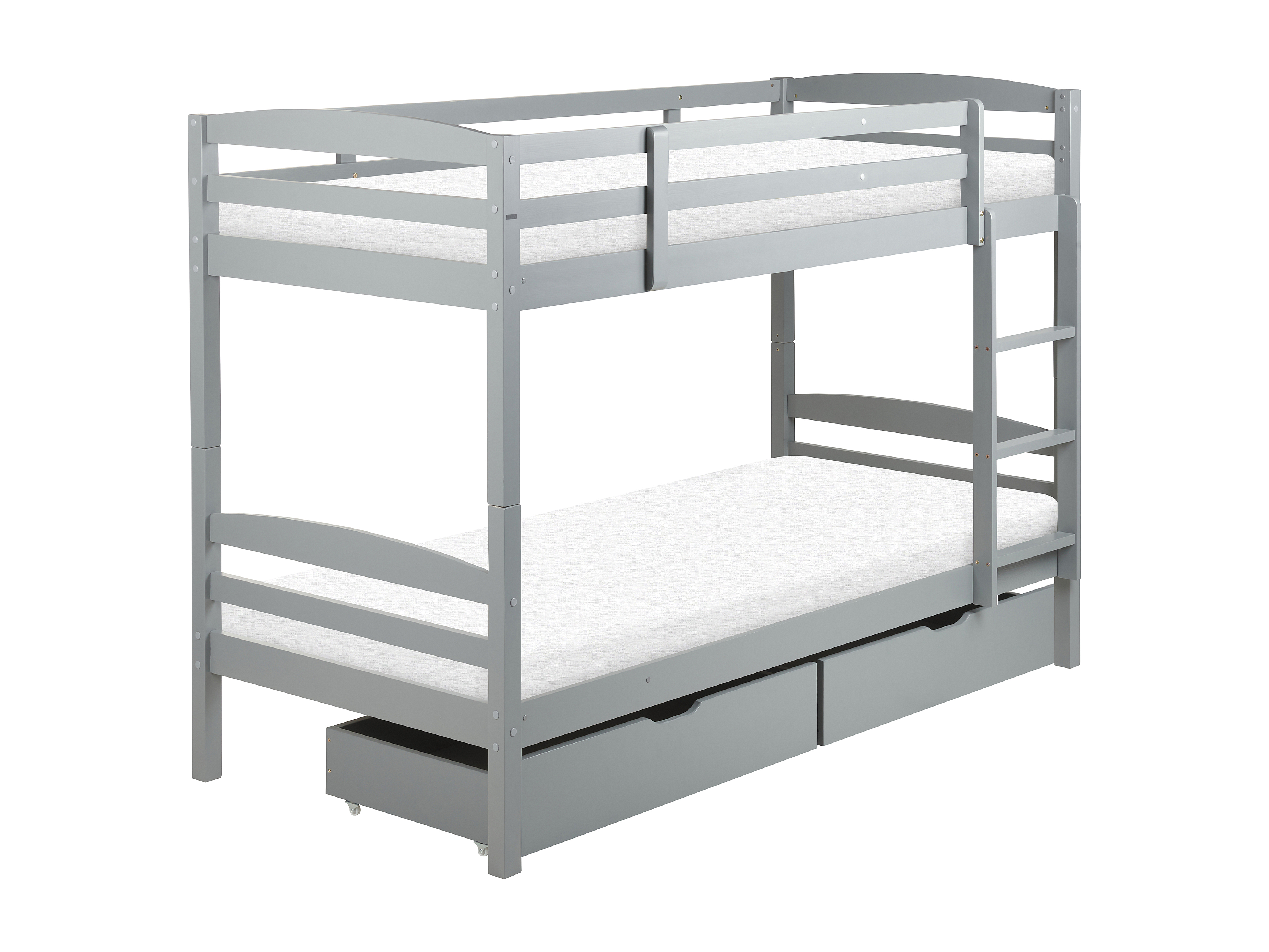 Lit superposé enfant 90x200cm - Bois massif - Lit coffre en dessous - gris (matelas non inclus)
