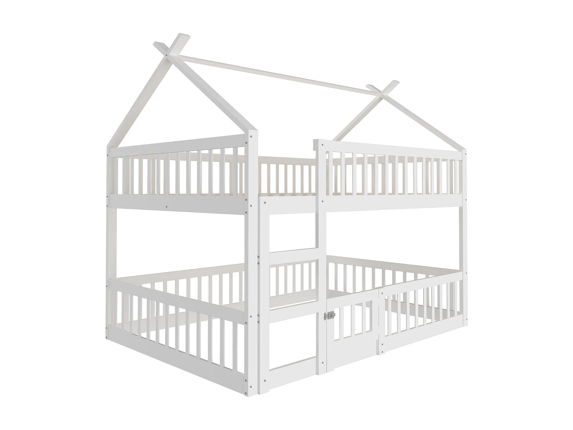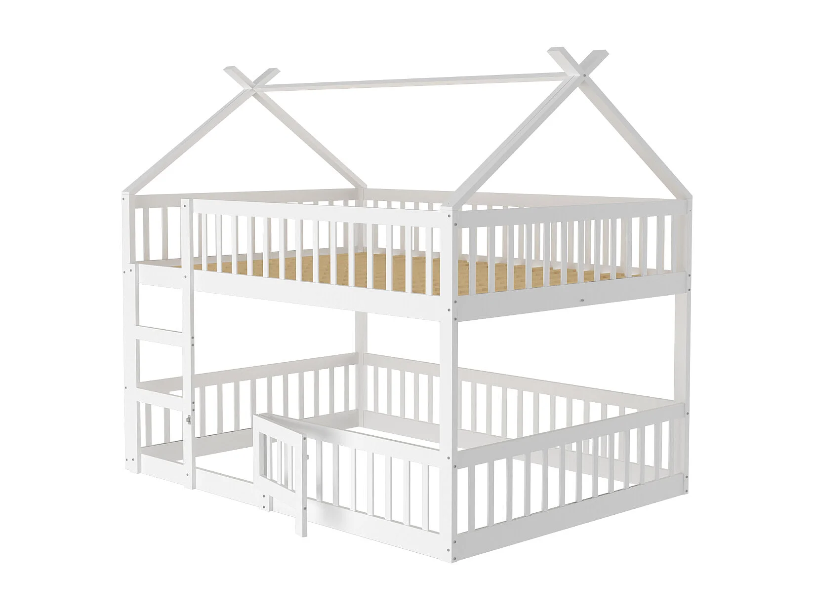 Lit superposé enfant 140x200 cm, lit familial avec échelle, style loft, cadre en bois massif blanc – Pratique et sécurisé pour chambre enfant