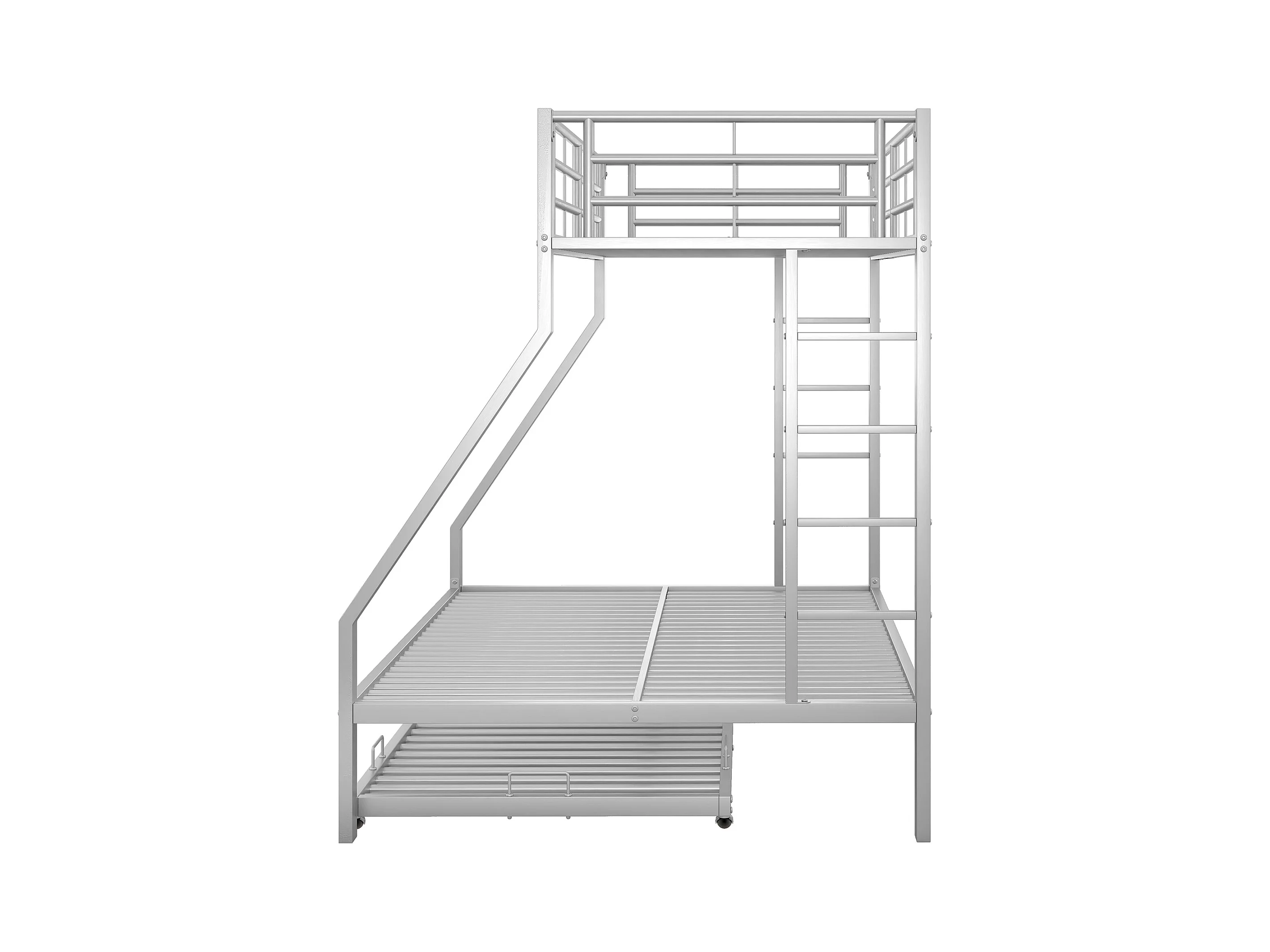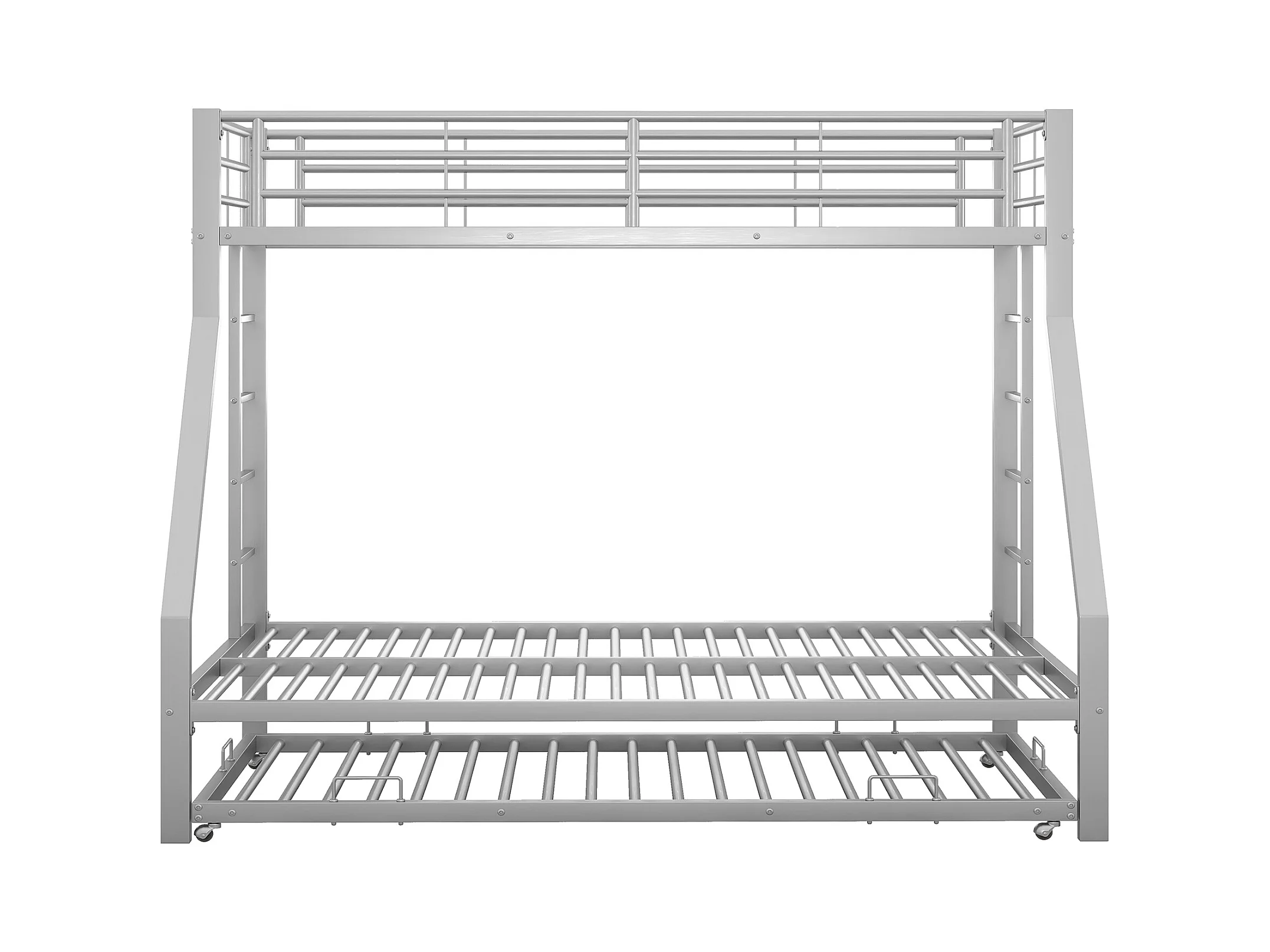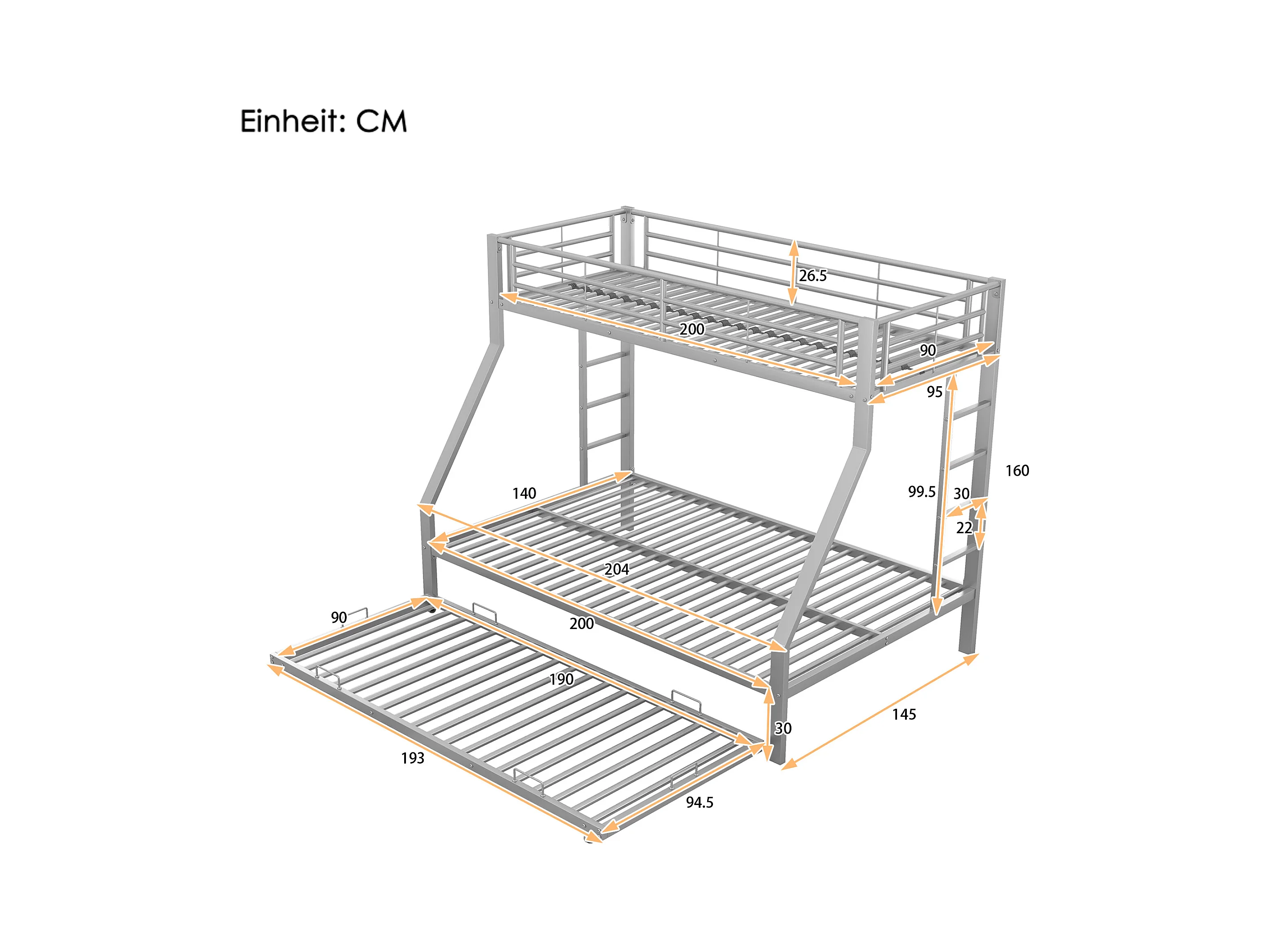 Lit superposé enfant 90(140)x200cm avec lit gigogne - protection anti-chute et éhelle - métal - argenté (sans matelas)