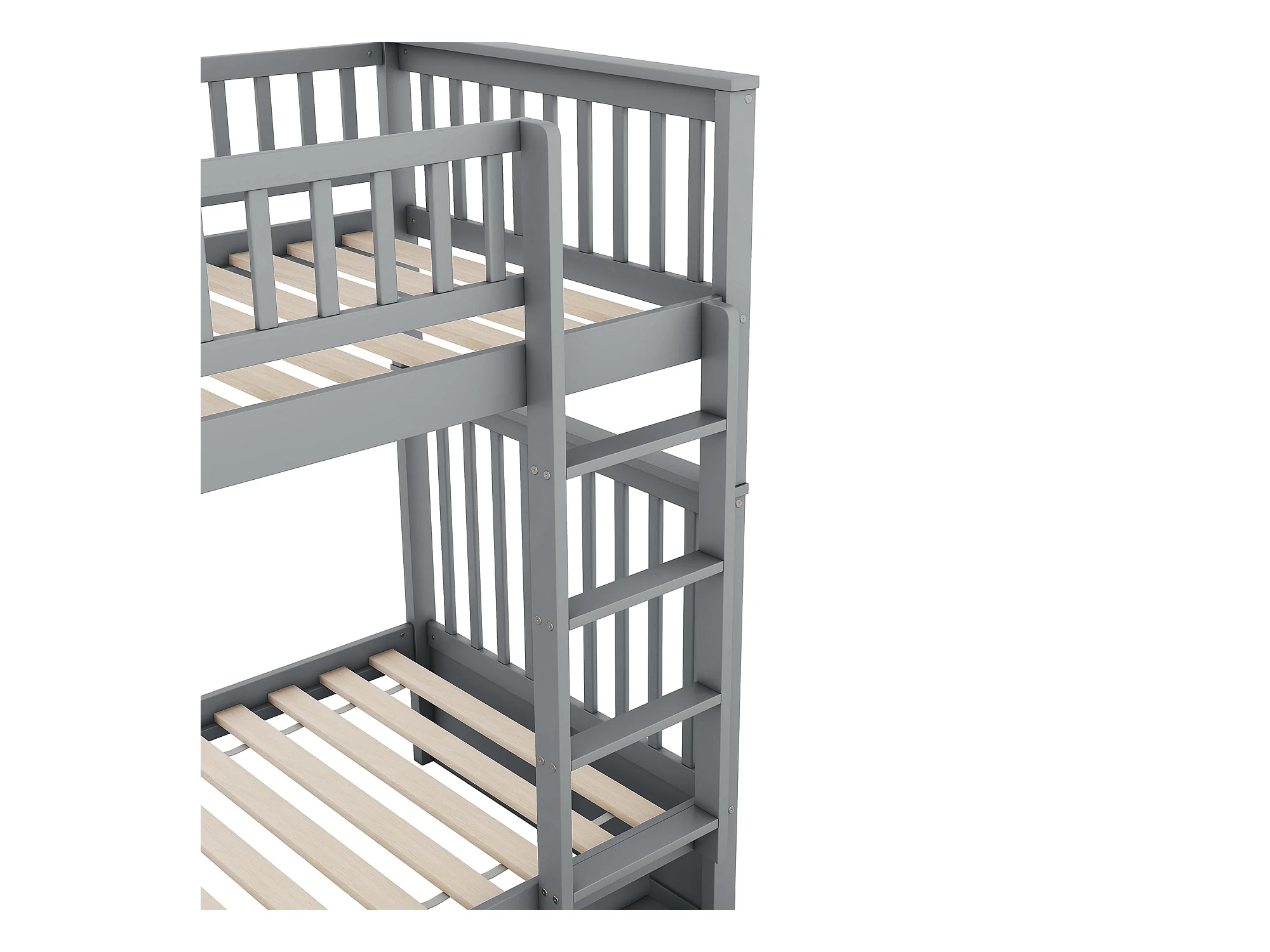 Lits superposés 2 places, 2x90x200cm avec toboggan et garde-corps, Cadre en pin, Sommier à lattes inclus, Gris