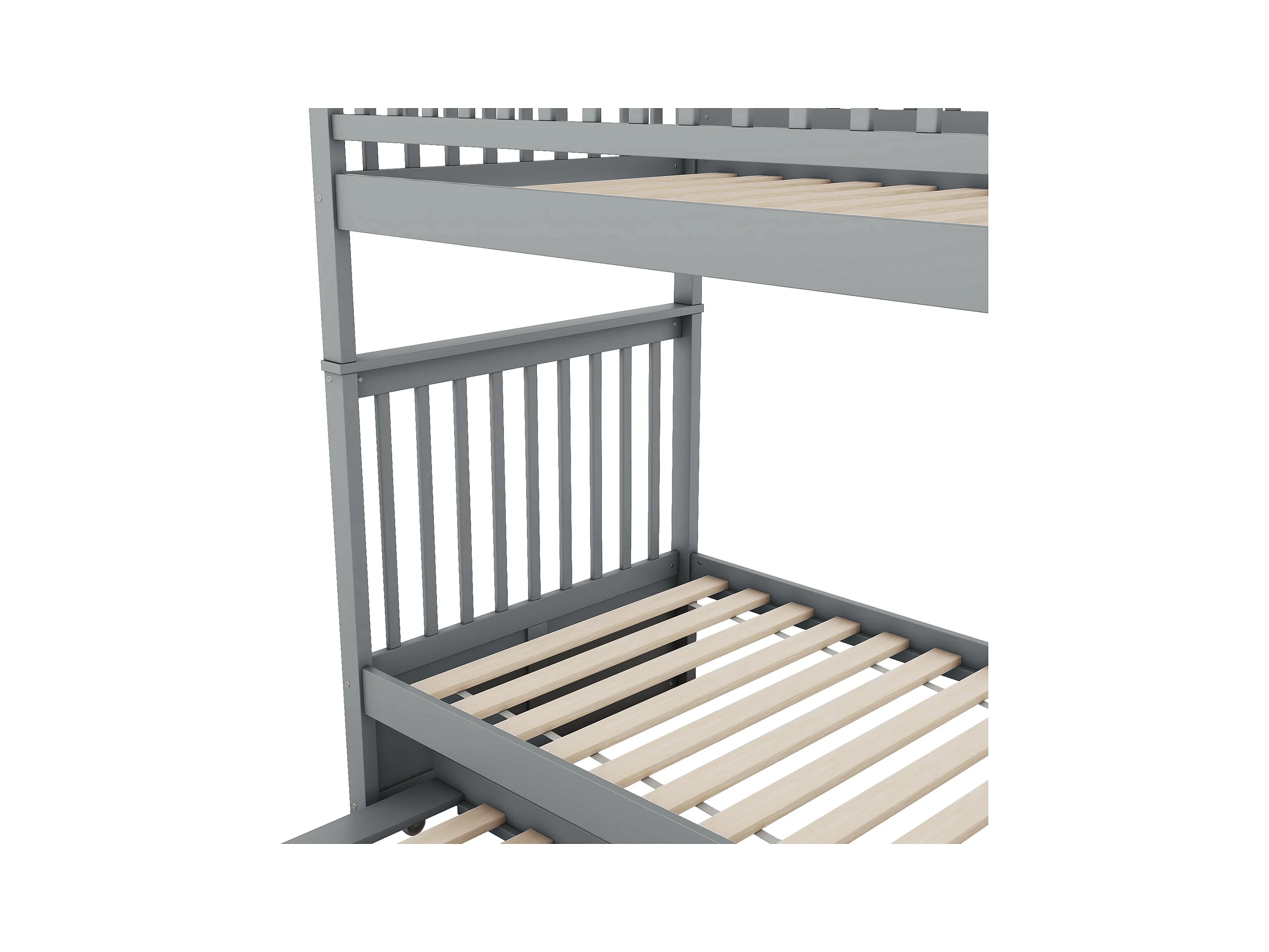 Lit superposé 90x200cm avec 1 lit gigogne 90x190cm, avec garde-corps haut escalier stable, anti-chutes, gris
