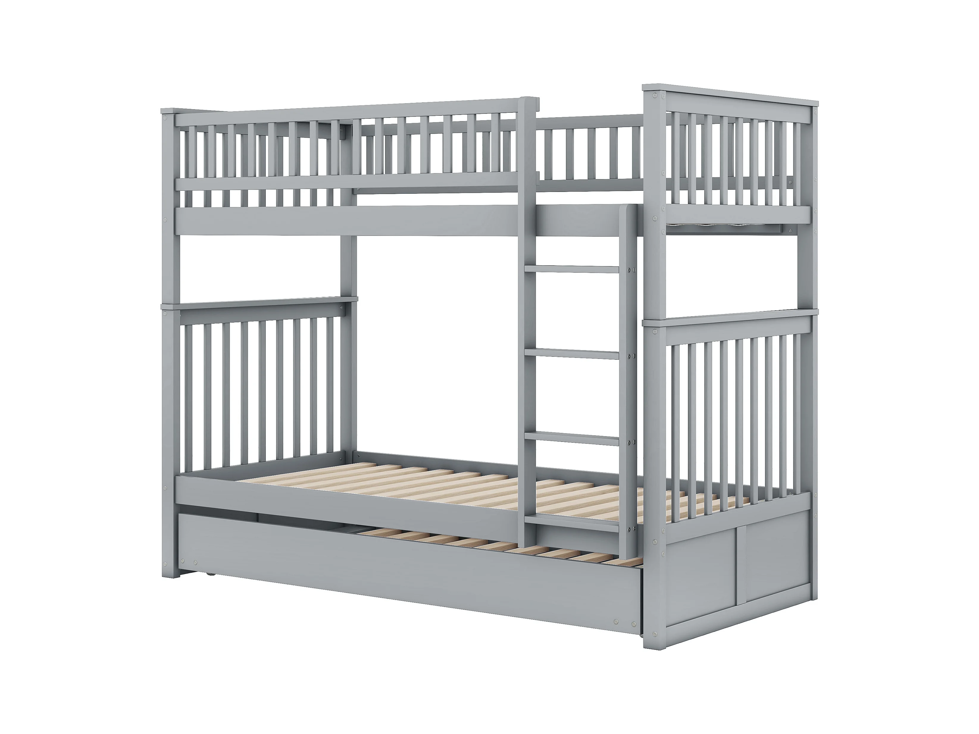 Lit superposé enfant 90x200 cm avec lit gigogne - protection anti-chute et éhelle - bois - gris (sans matelas)