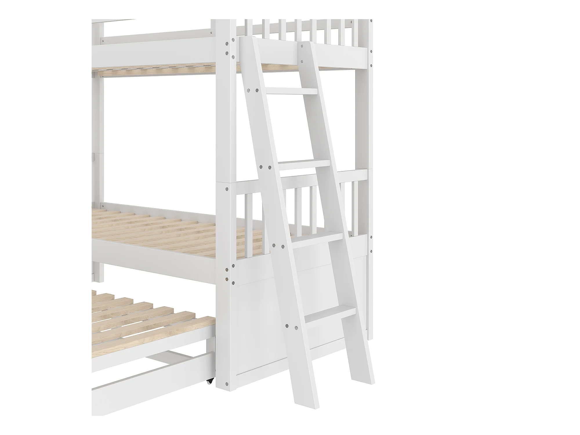 Lit superposé 90x200 cm avec lit gigogne - protection anti-chute avec éhelle - bois - blanc (sans matelas)