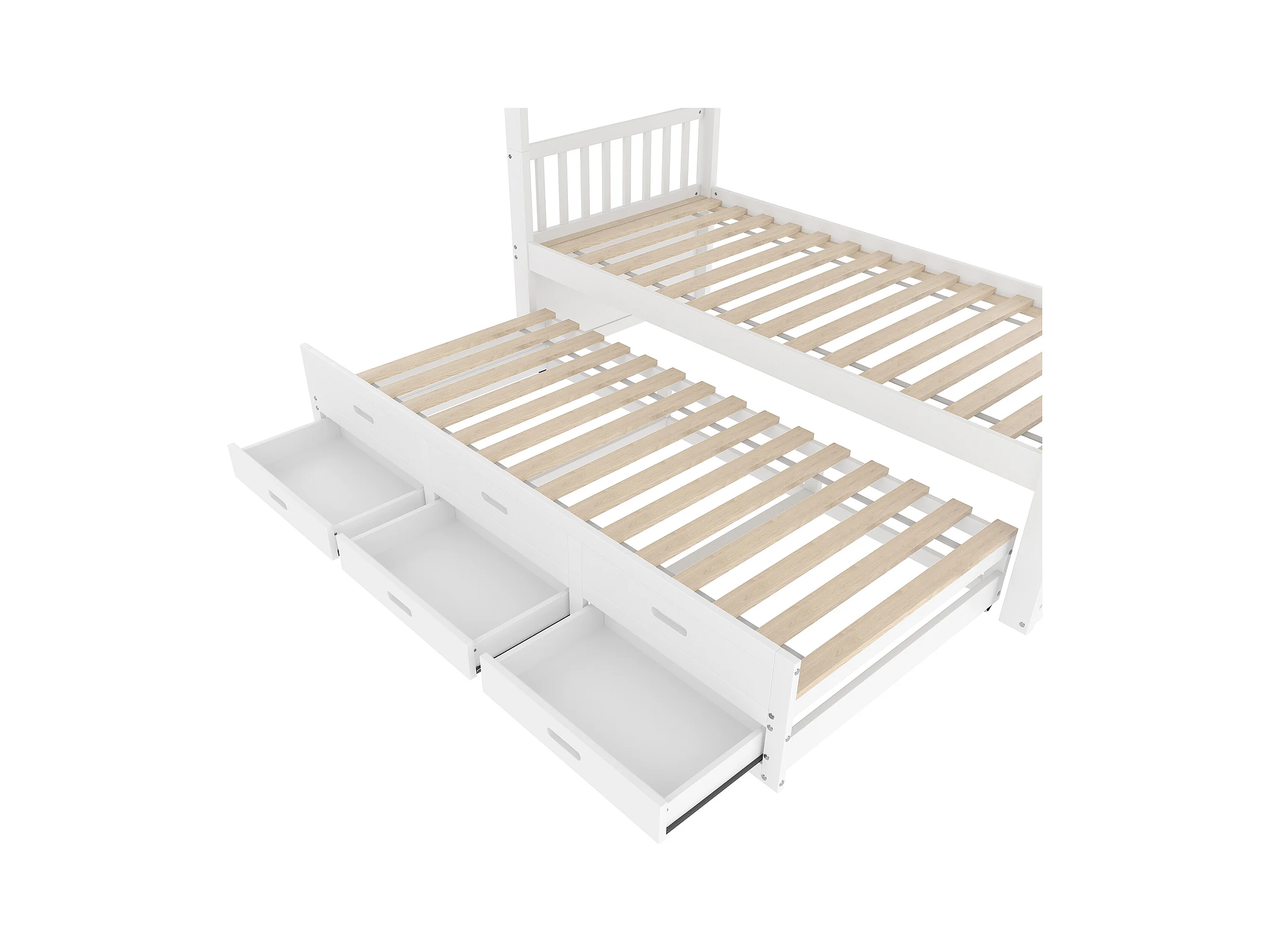 Lit superposé 90x200 cm avec 3 tiroirs - lit gigogne avec protection anti-chute et éhelle - bois - blanc (sans matelas)