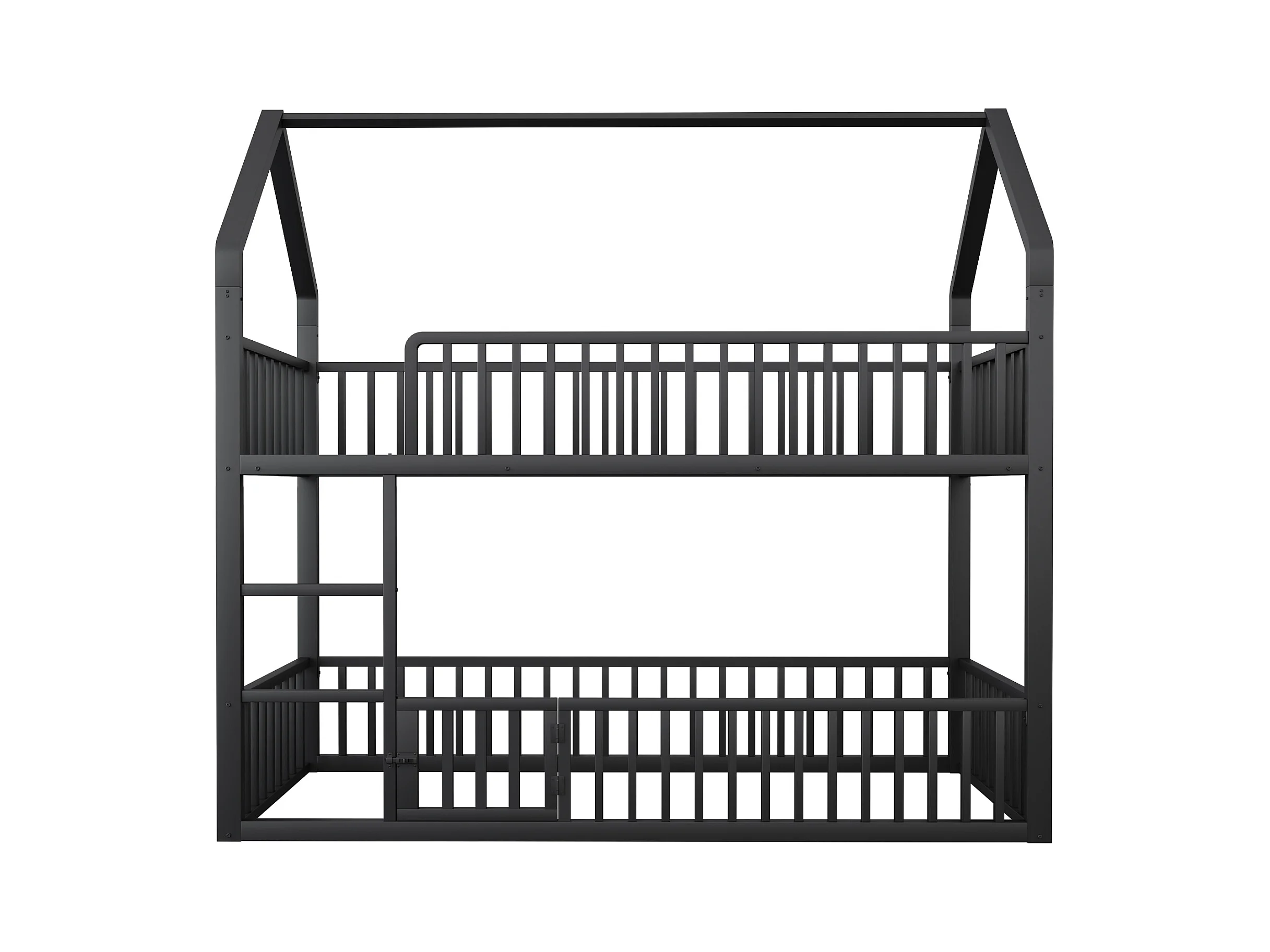 Lit superposé enfant 90x200cm - avec escalier - avec petite porte - Métal - Noir (matelas non inclus)