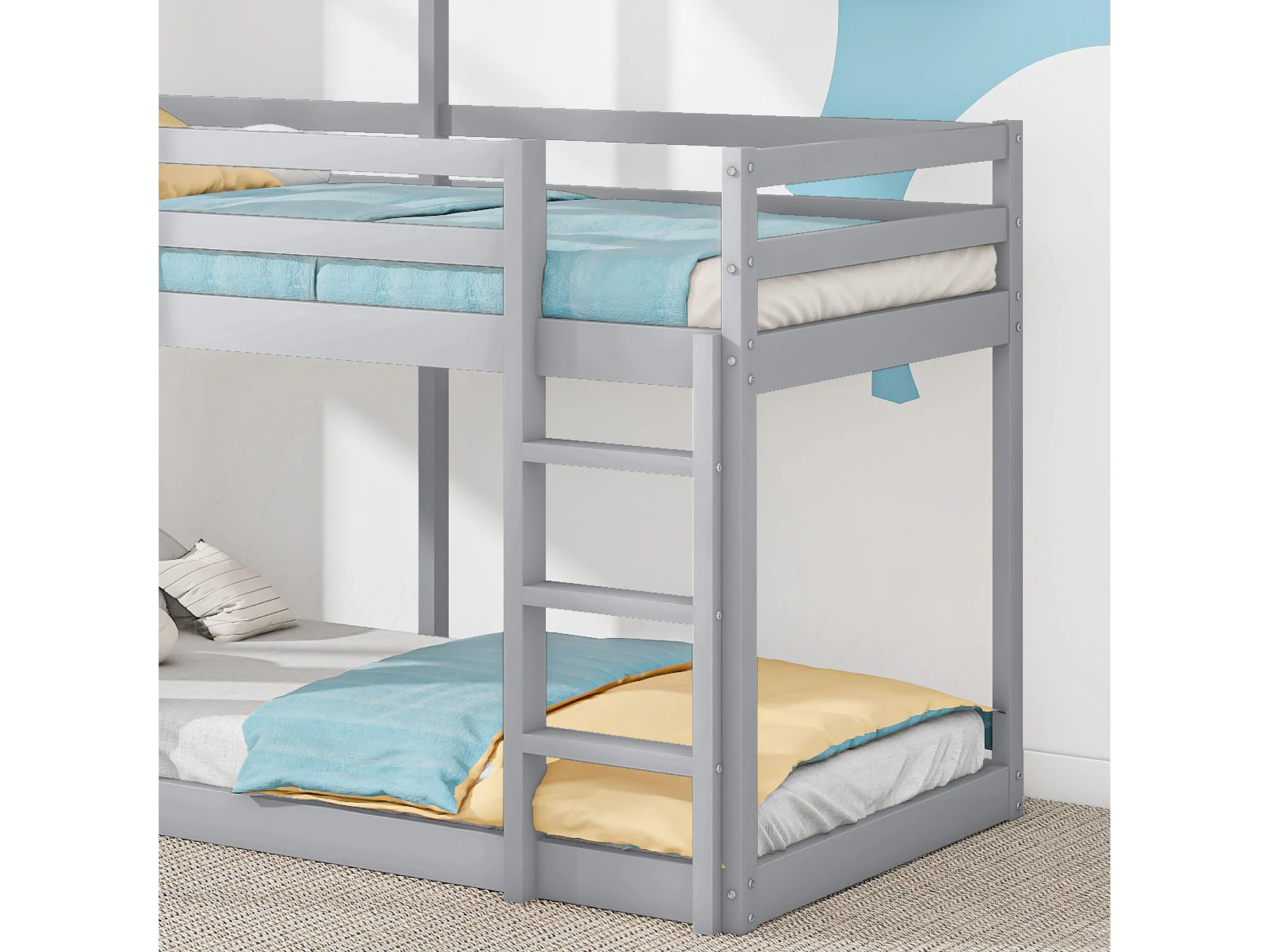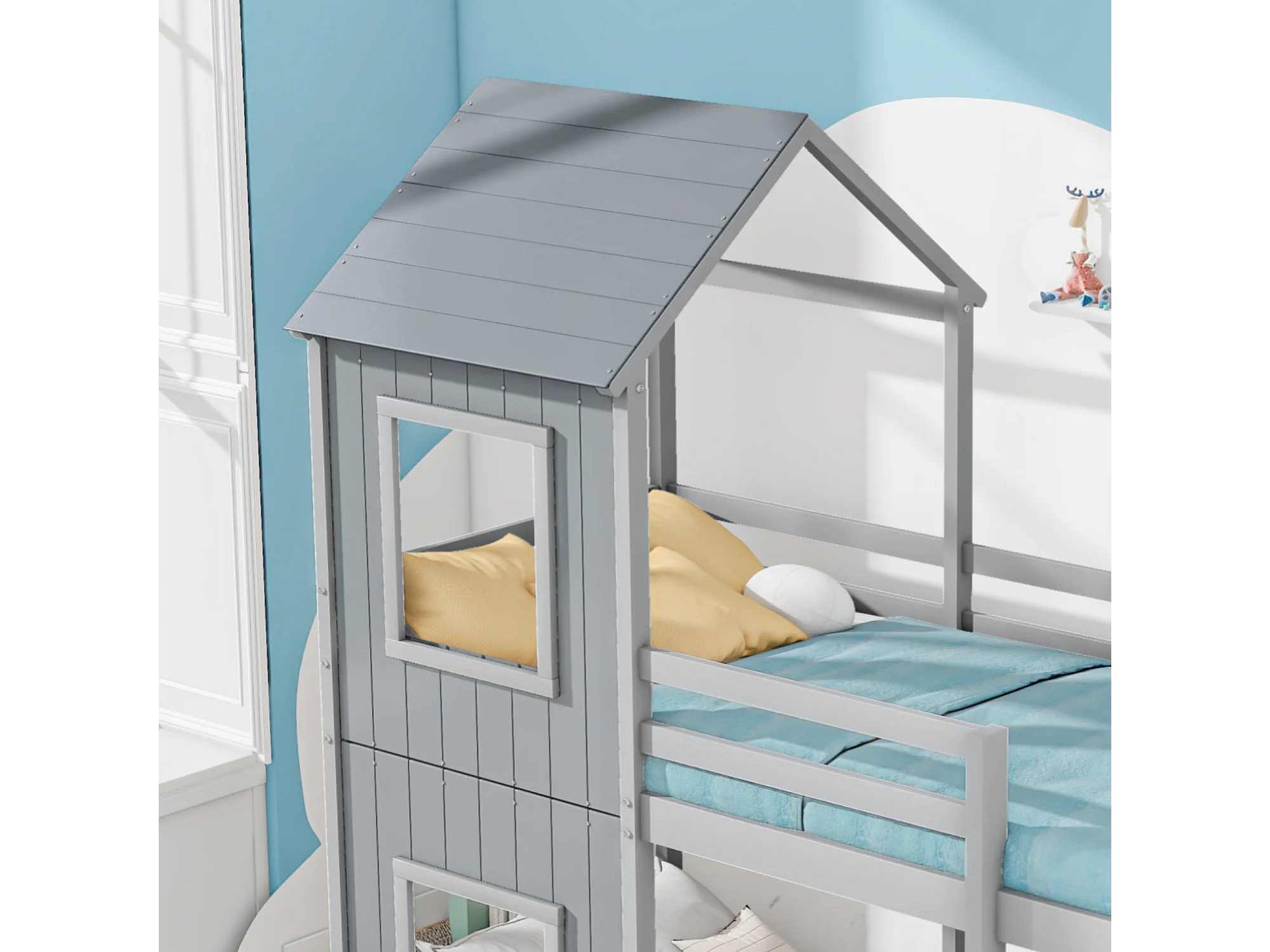 Lit enfant 90x200cm avec sommier - lit cabane avec protection anti-chute et baldaquin - bois - gris (sans matelas)