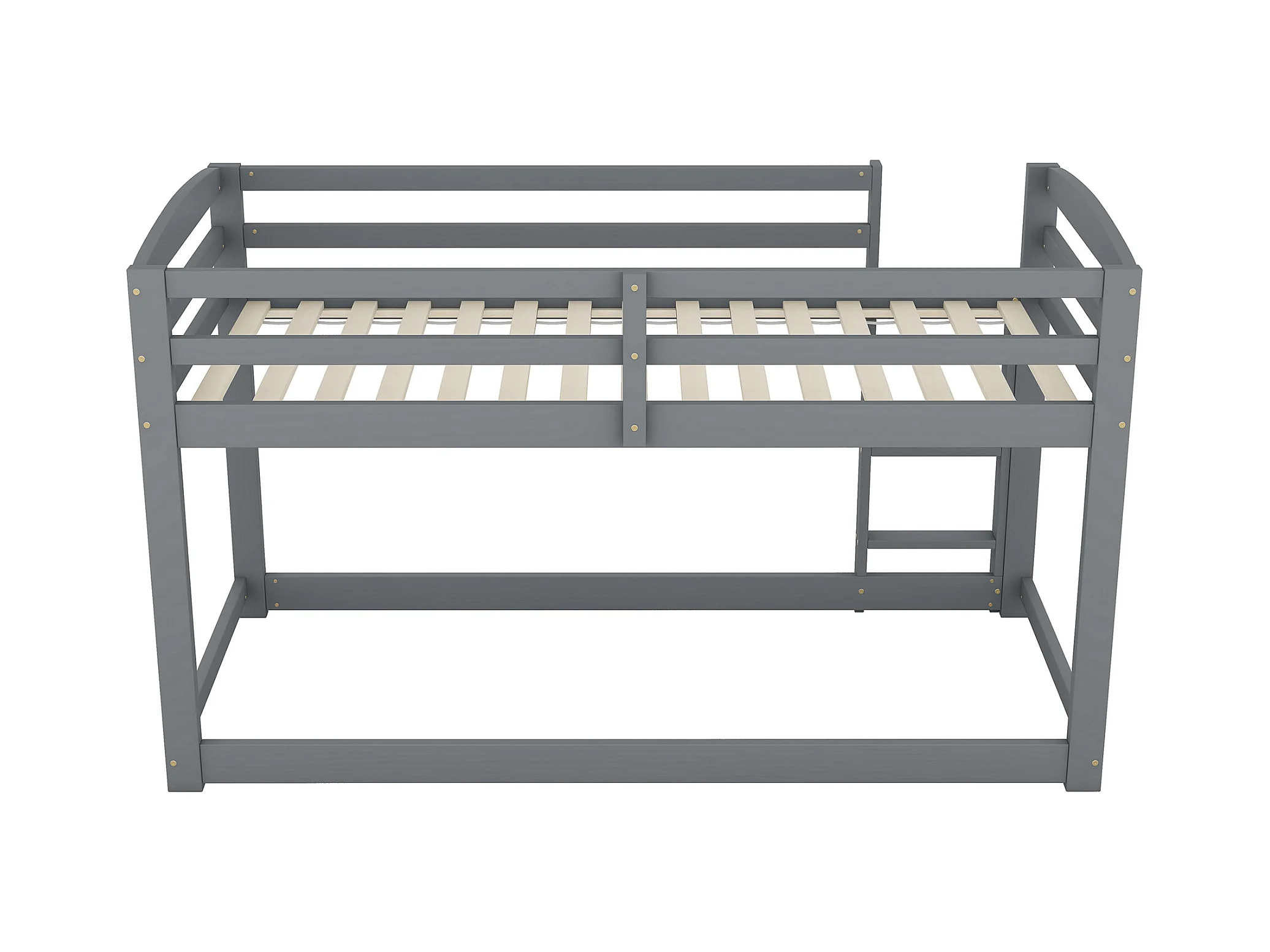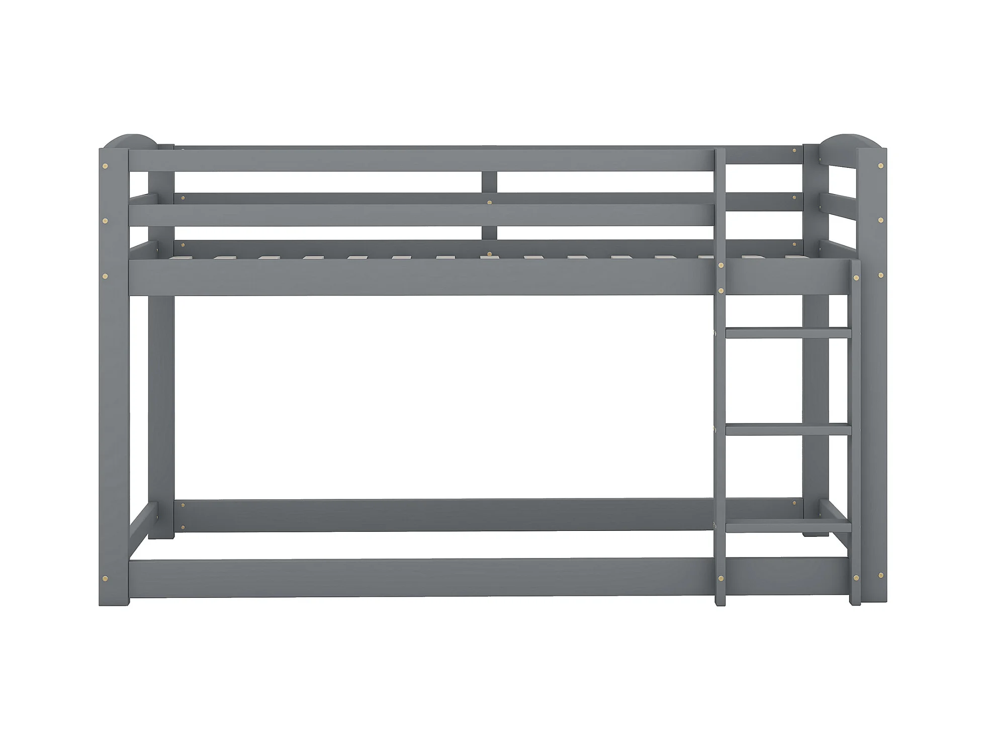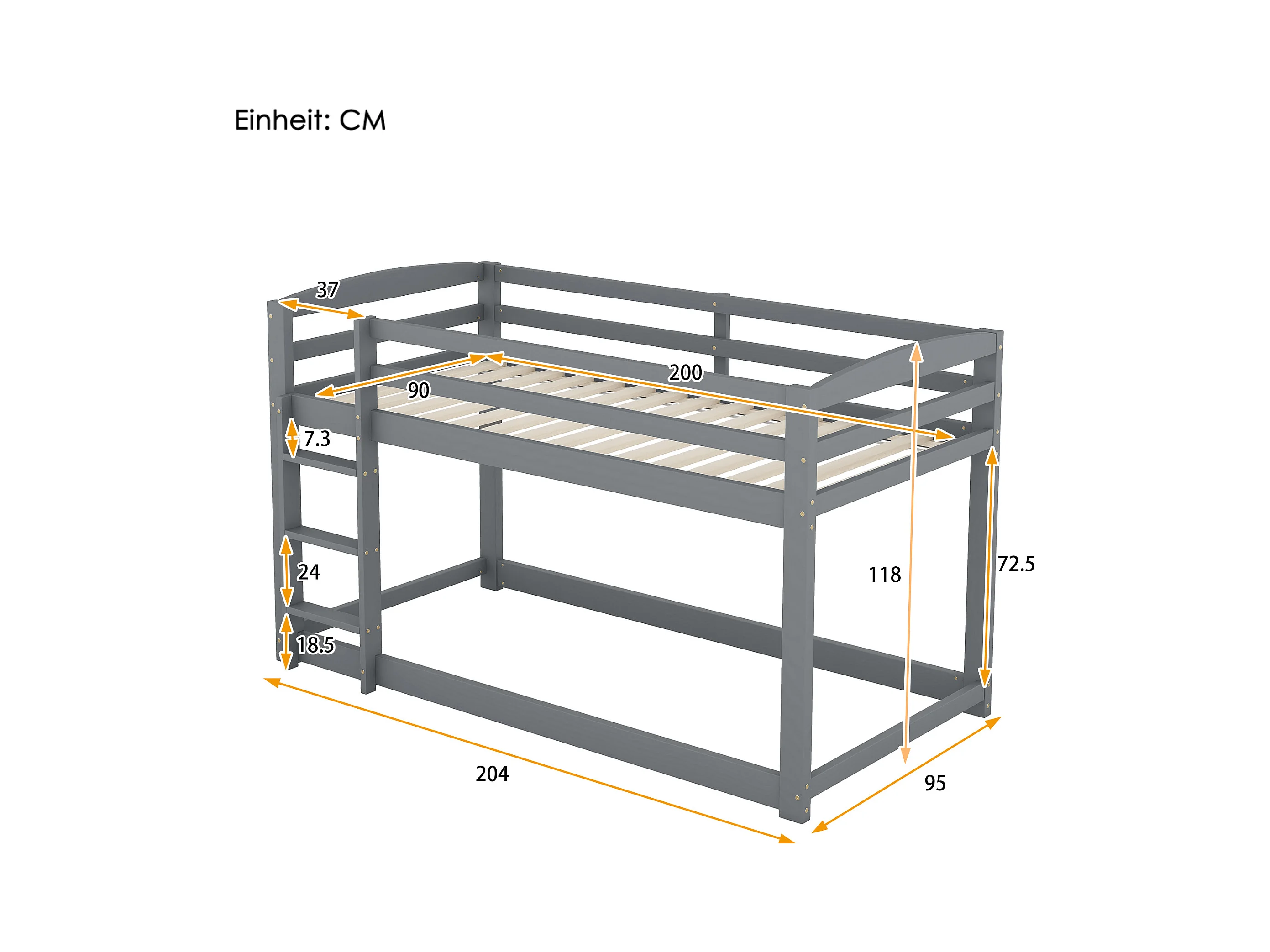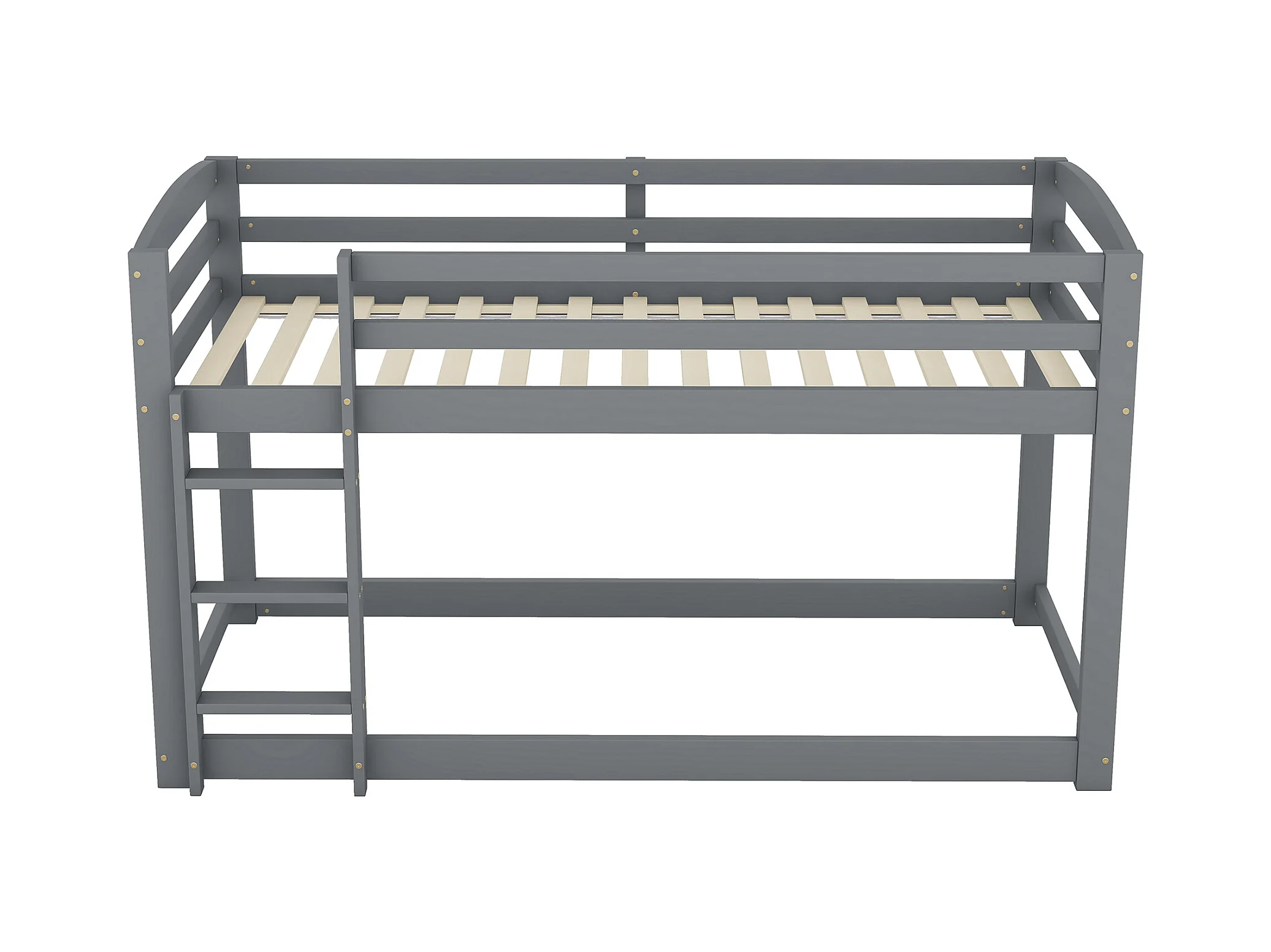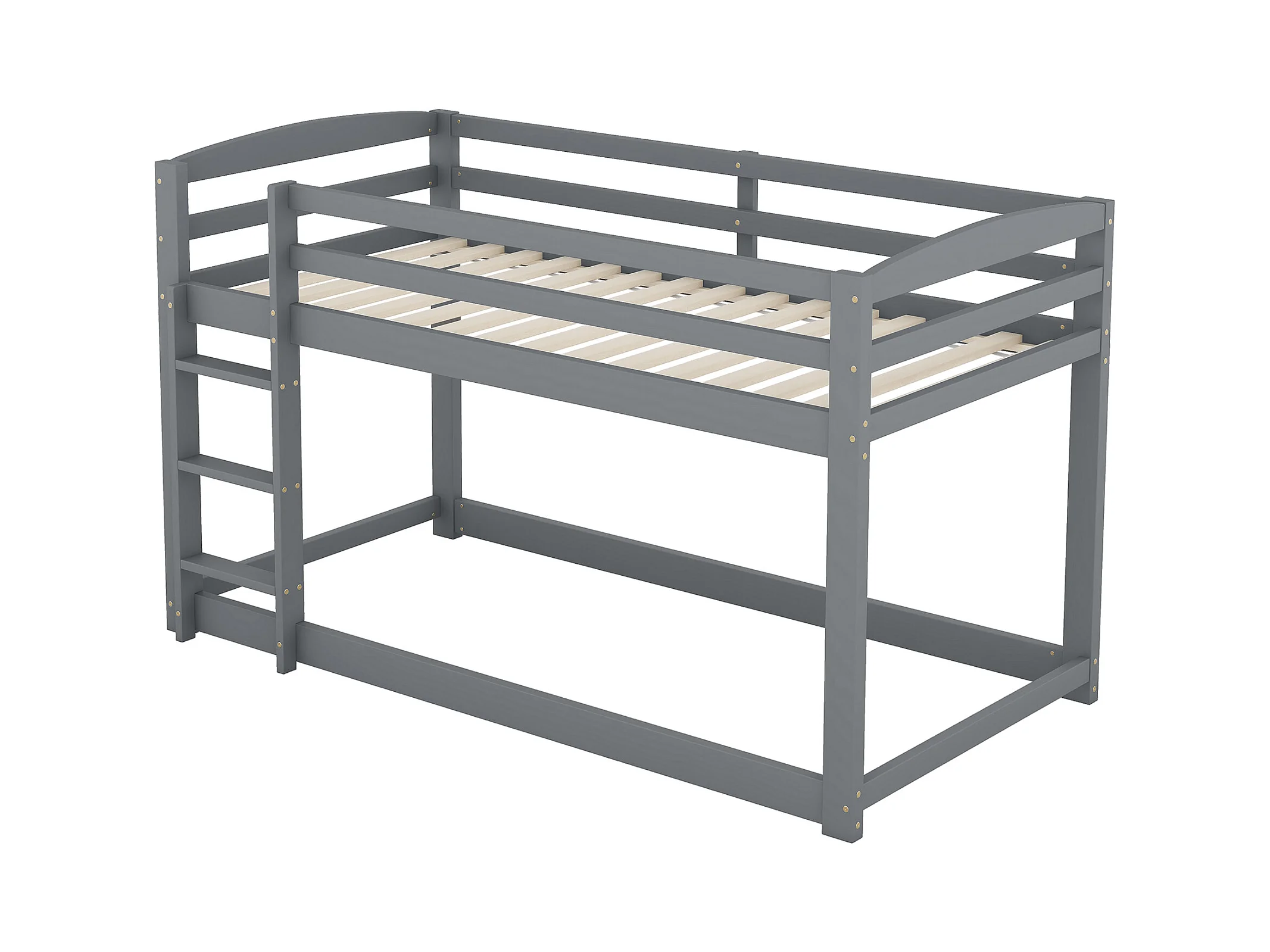 Lits superposés 2 places, 2x90x200cm avec toboggan et garde-corps, Cadre en pin, Sommier à lattes inclus, Gris