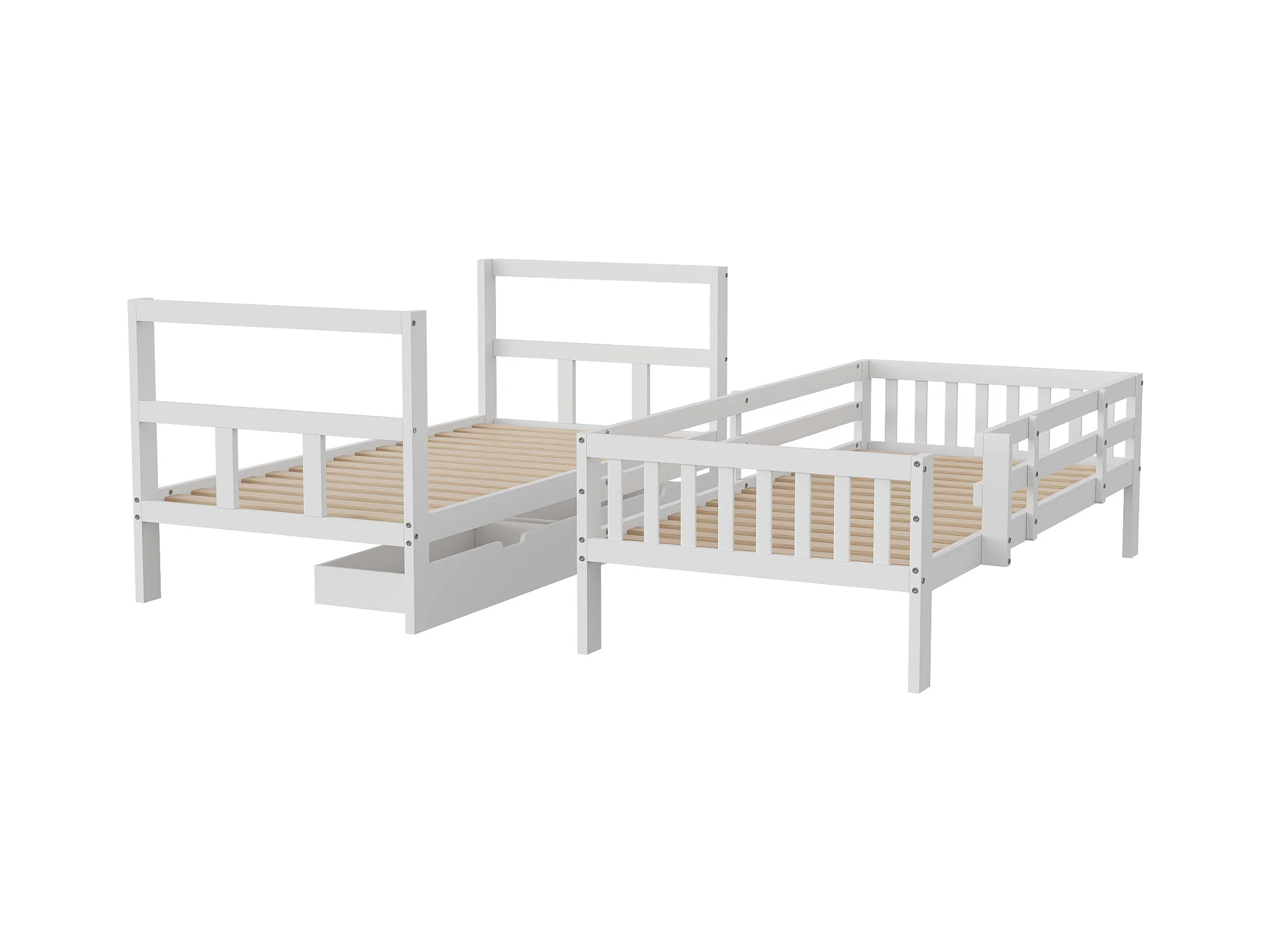 Lit superposé enfant en bois massif 90x200 cm avec tiroirs de rangement – Séparable en 2 lits simples