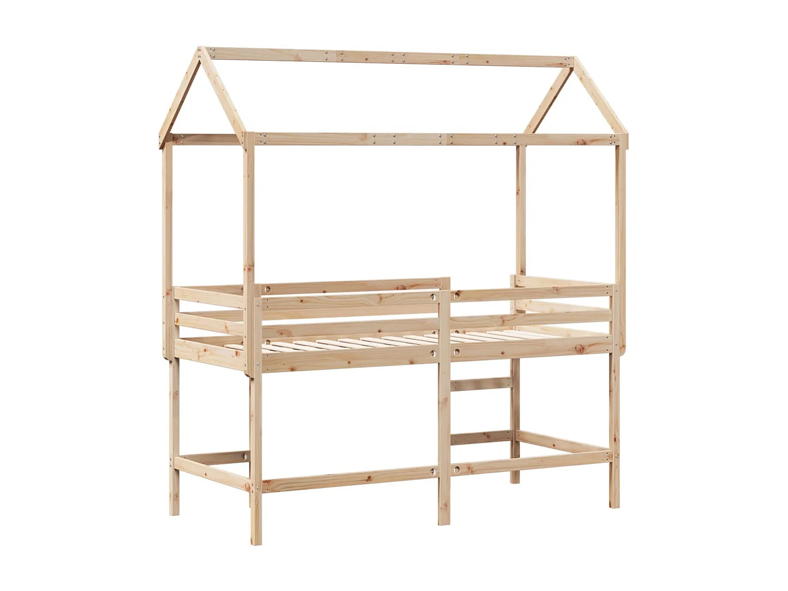 Lit superposé et échelle et toit 90x190 cm bois de pin massif