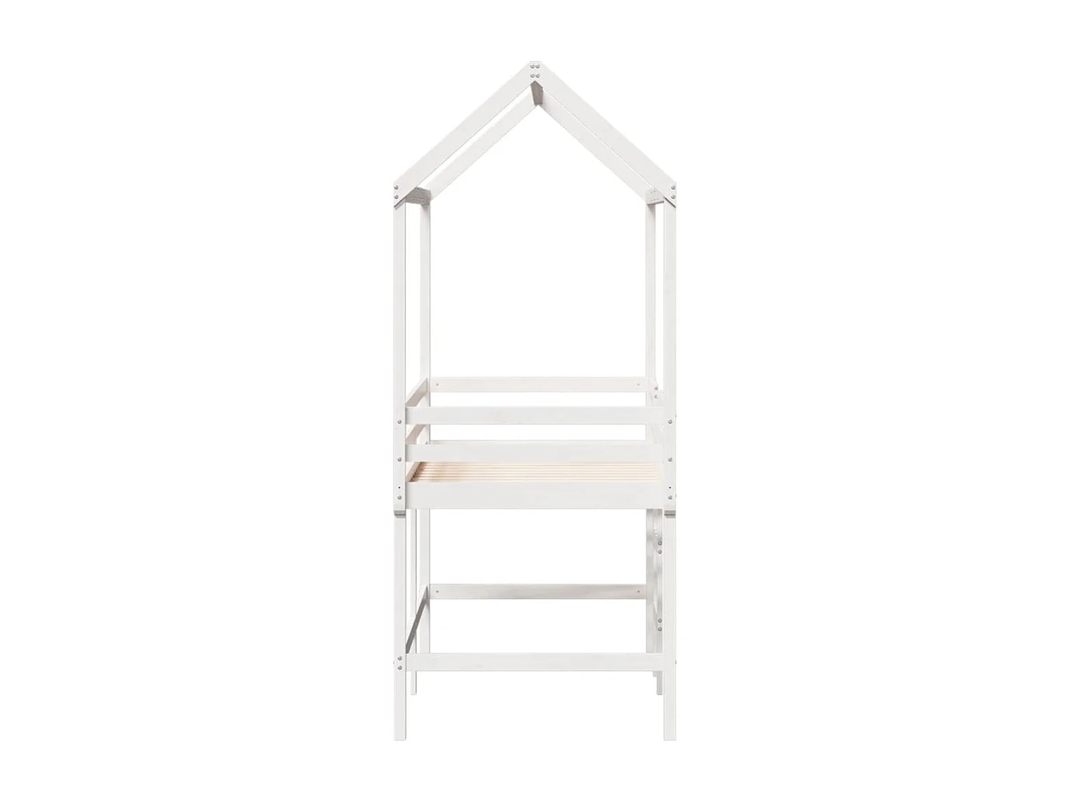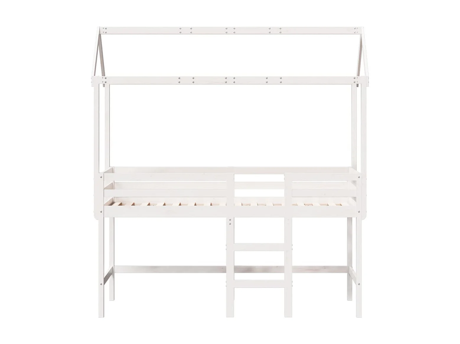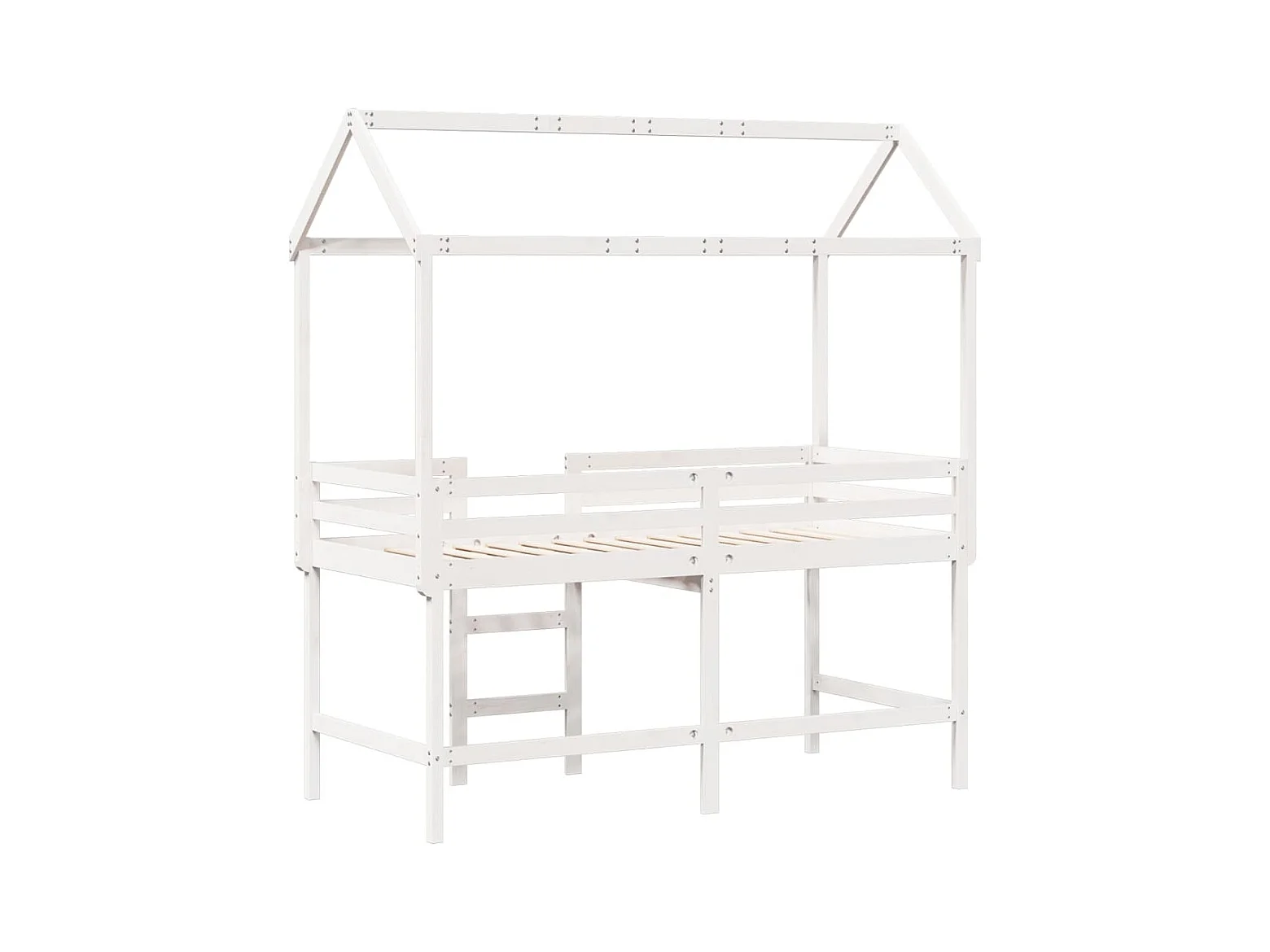 Lit superposé et échelle et toit blanc 90x190cm bois pin massif