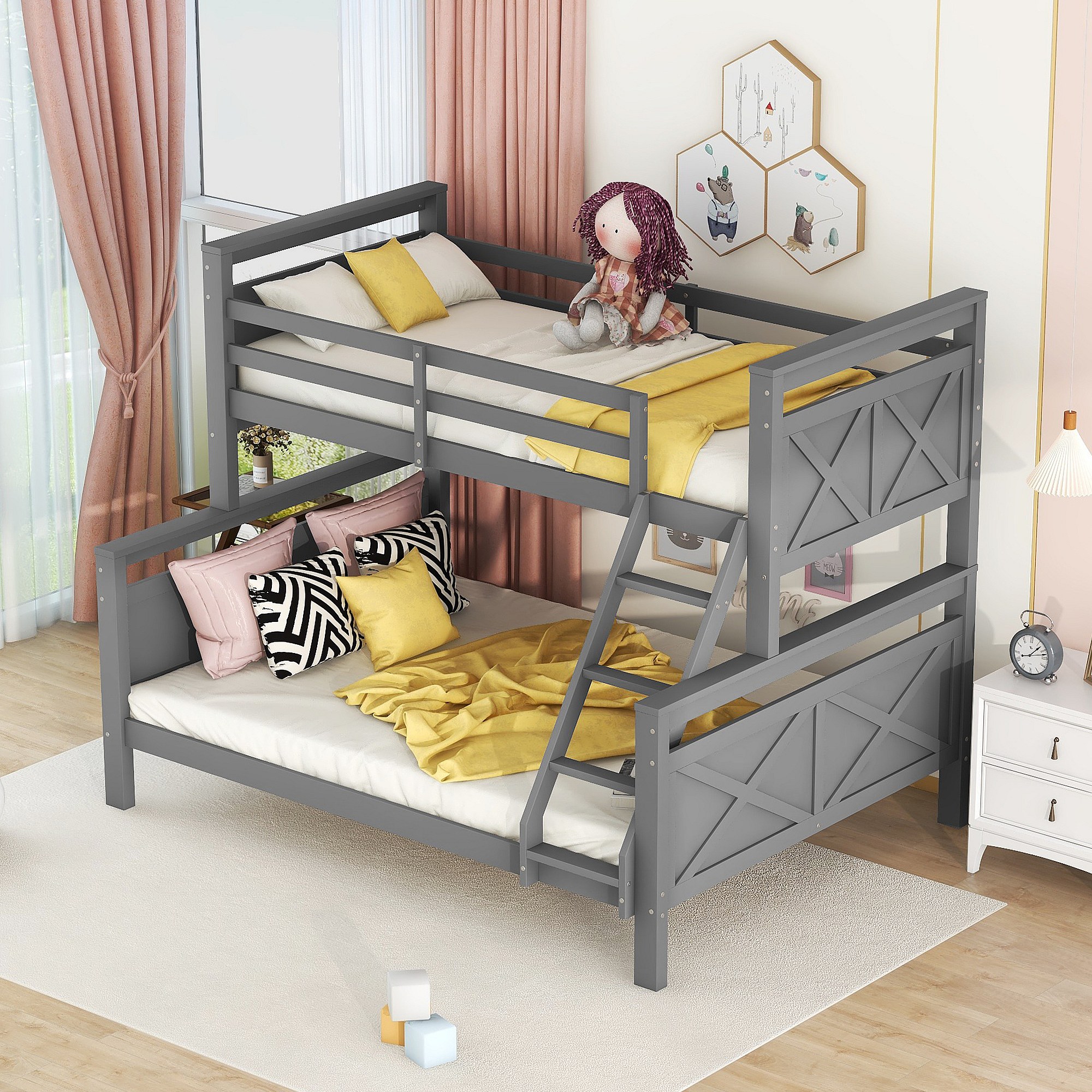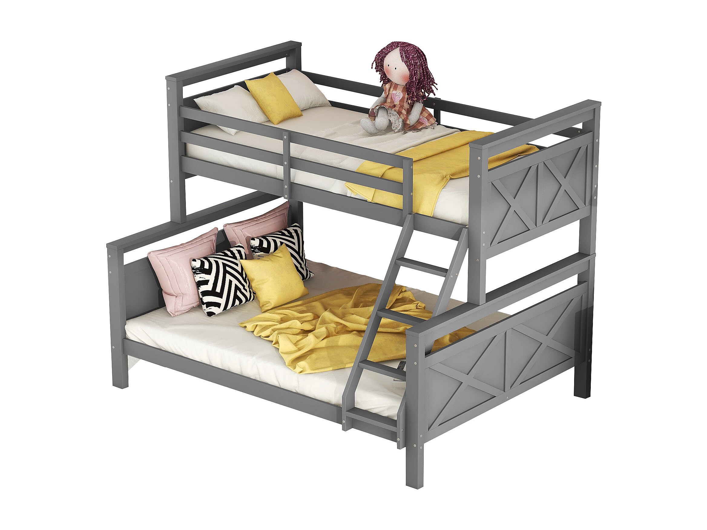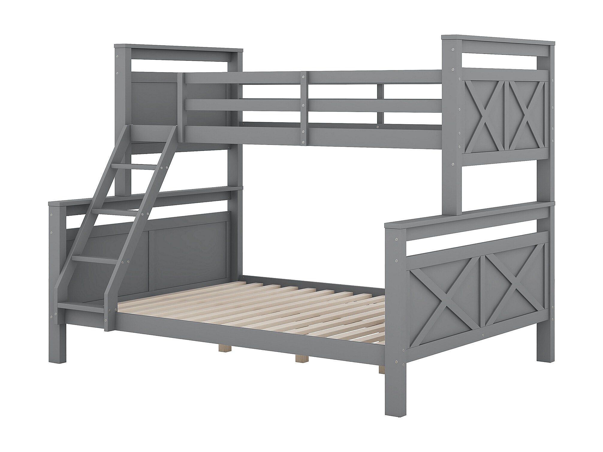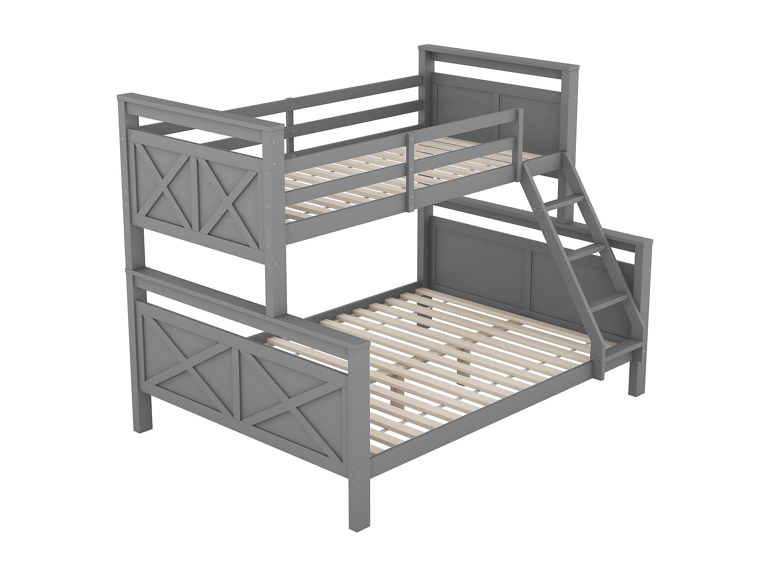 Lit superposé gris 90(140)x200cm avec échelle et barrières de sécurité, transformable en 2 lits séparés (sans matelas)