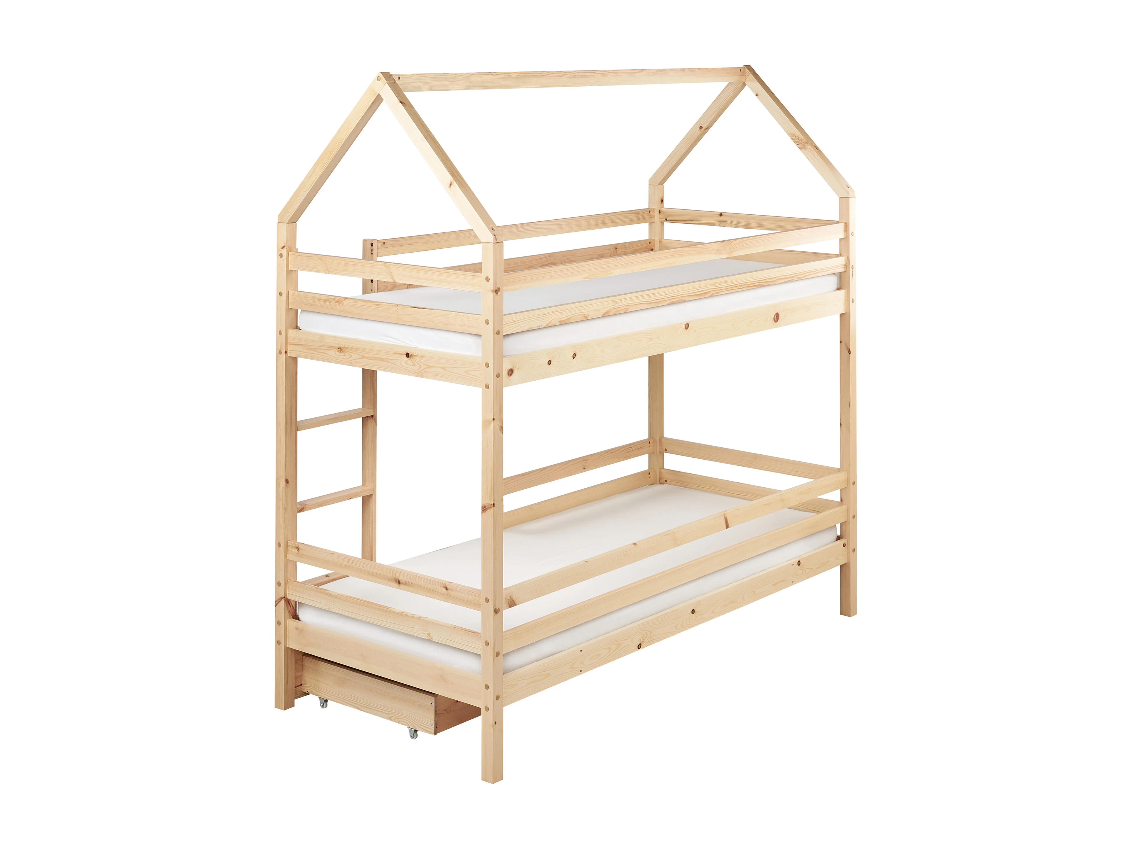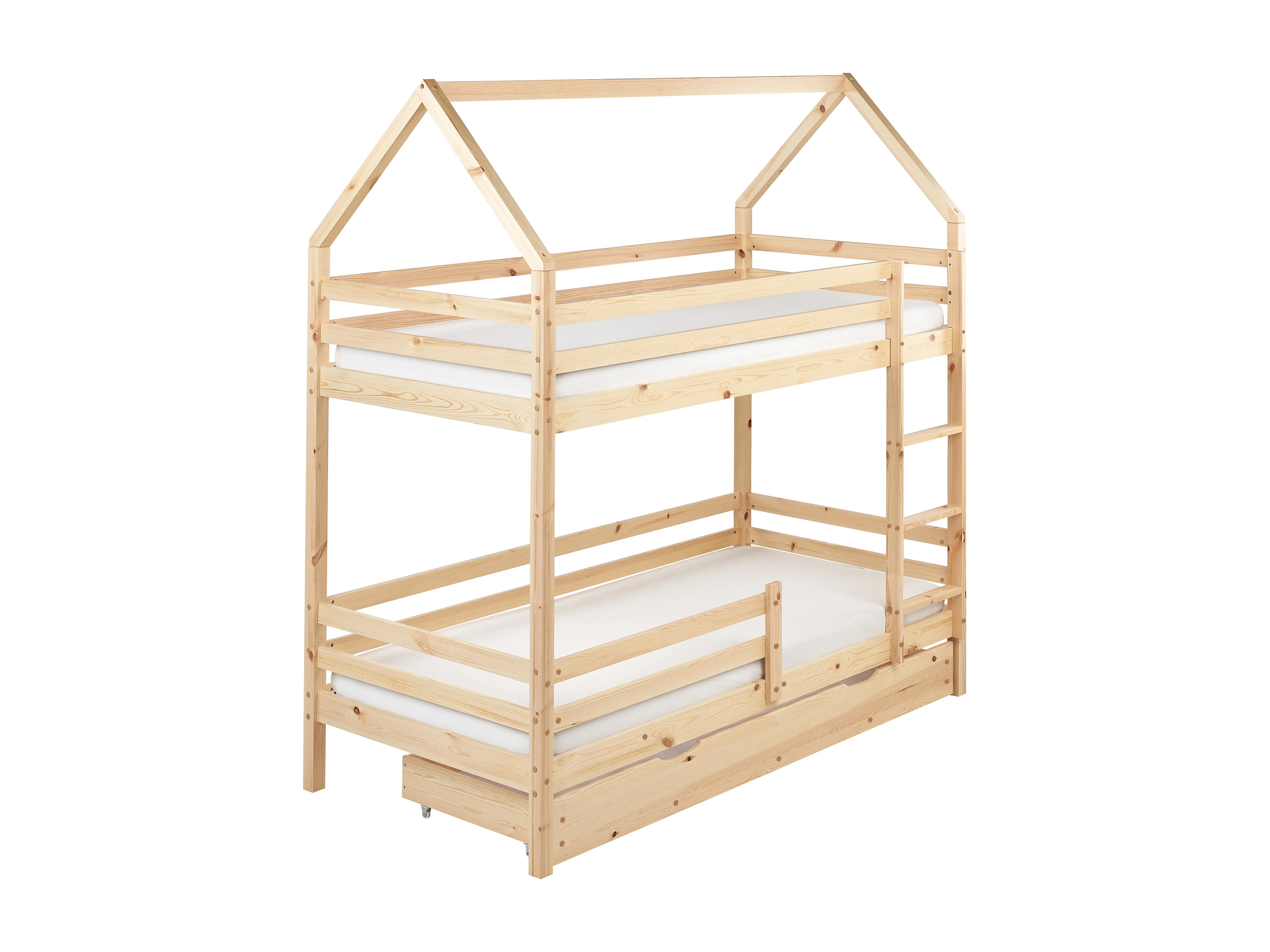 Lit superposé Maison Bois de pin GIRGOLS 90 x 200 cm avec rangement Marron clair