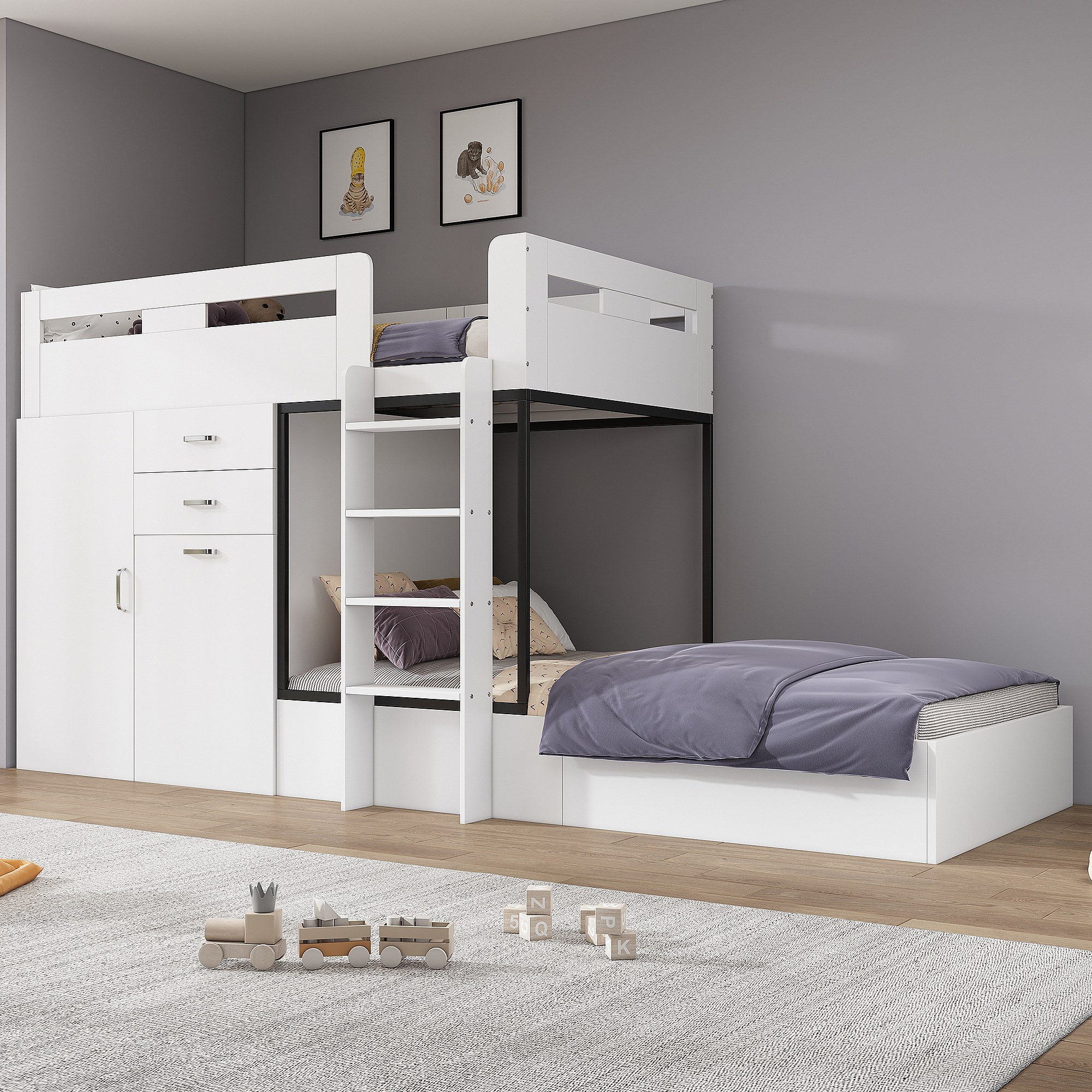 Lit superposé multifonctionnel - 2x90x200 cm- avec armoire et un bureau coulissant - Blanc (sans matelas)