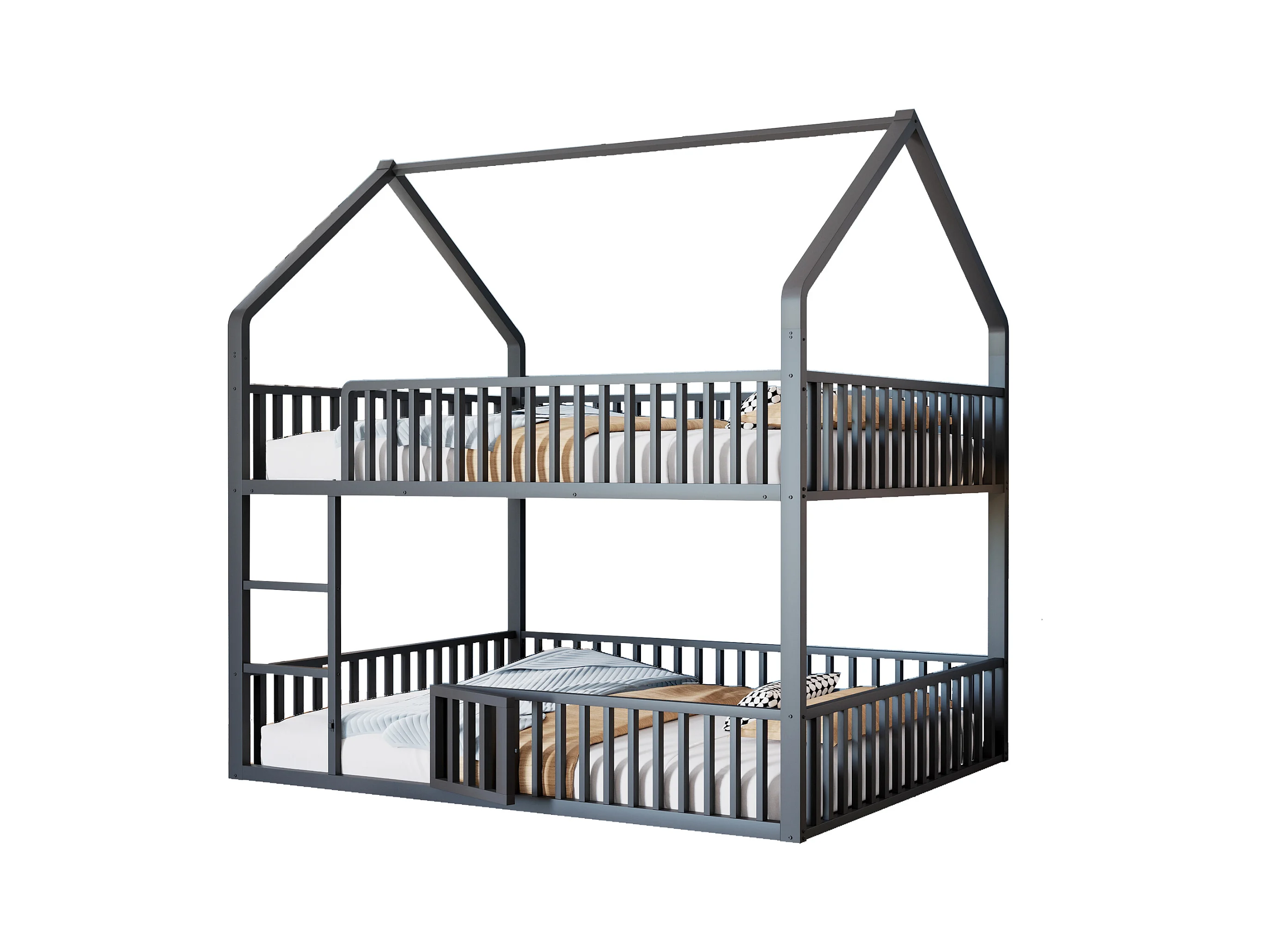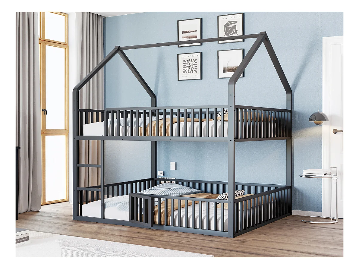 Lit superposé pour enfants 140\200 cm, cadre métallique, avec échelle, design loft (matelas non inclus)