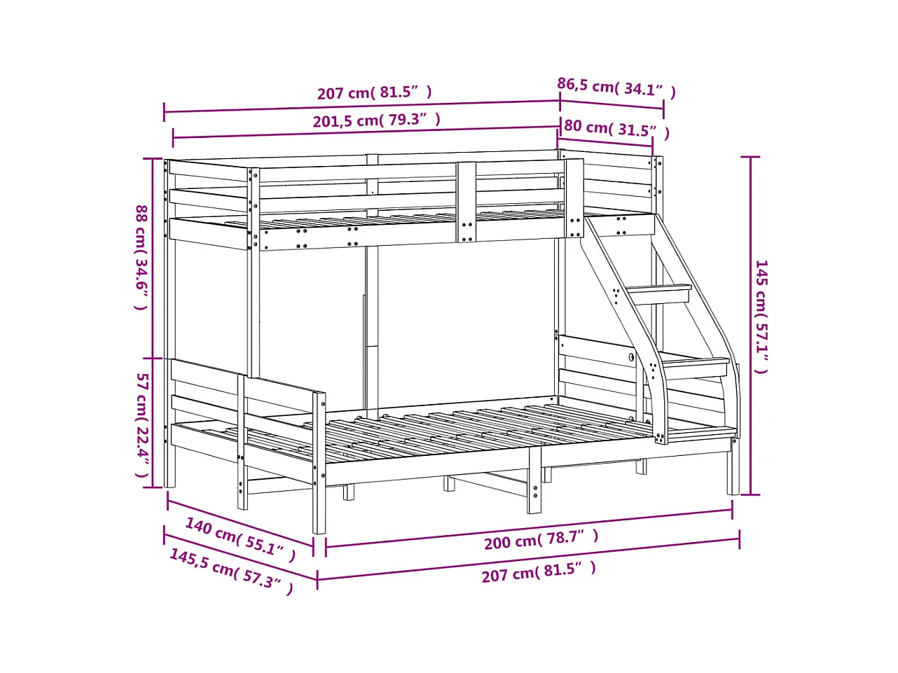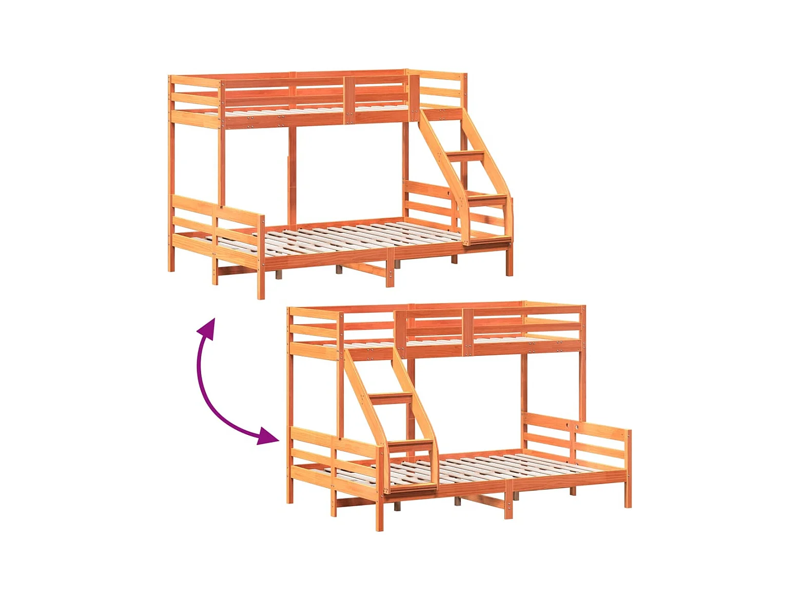 Lit superposé triple 140x200/70x140 cm bois de pin massif