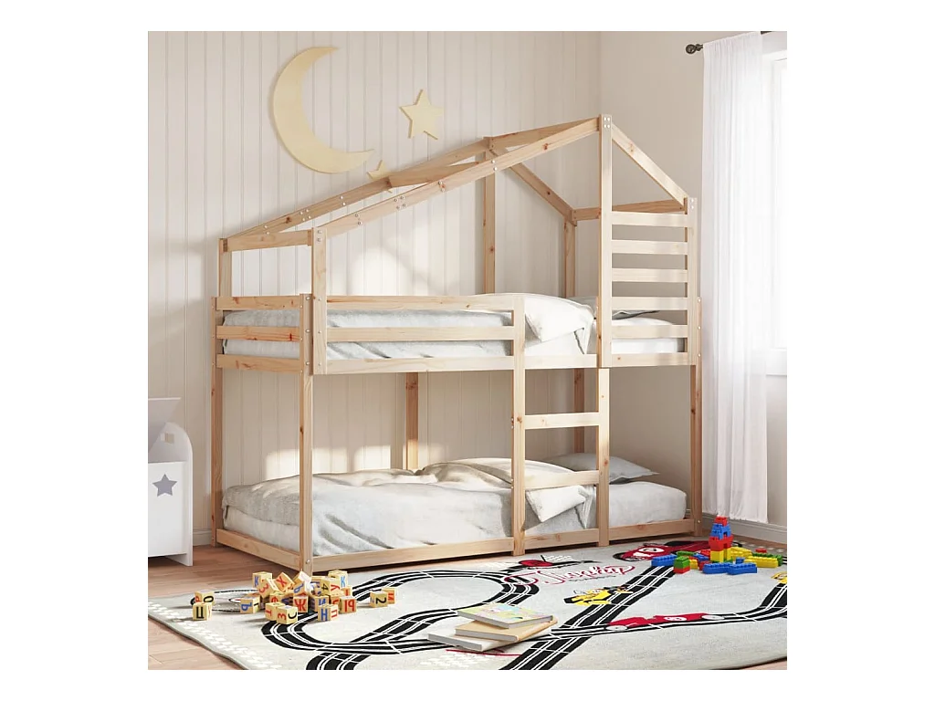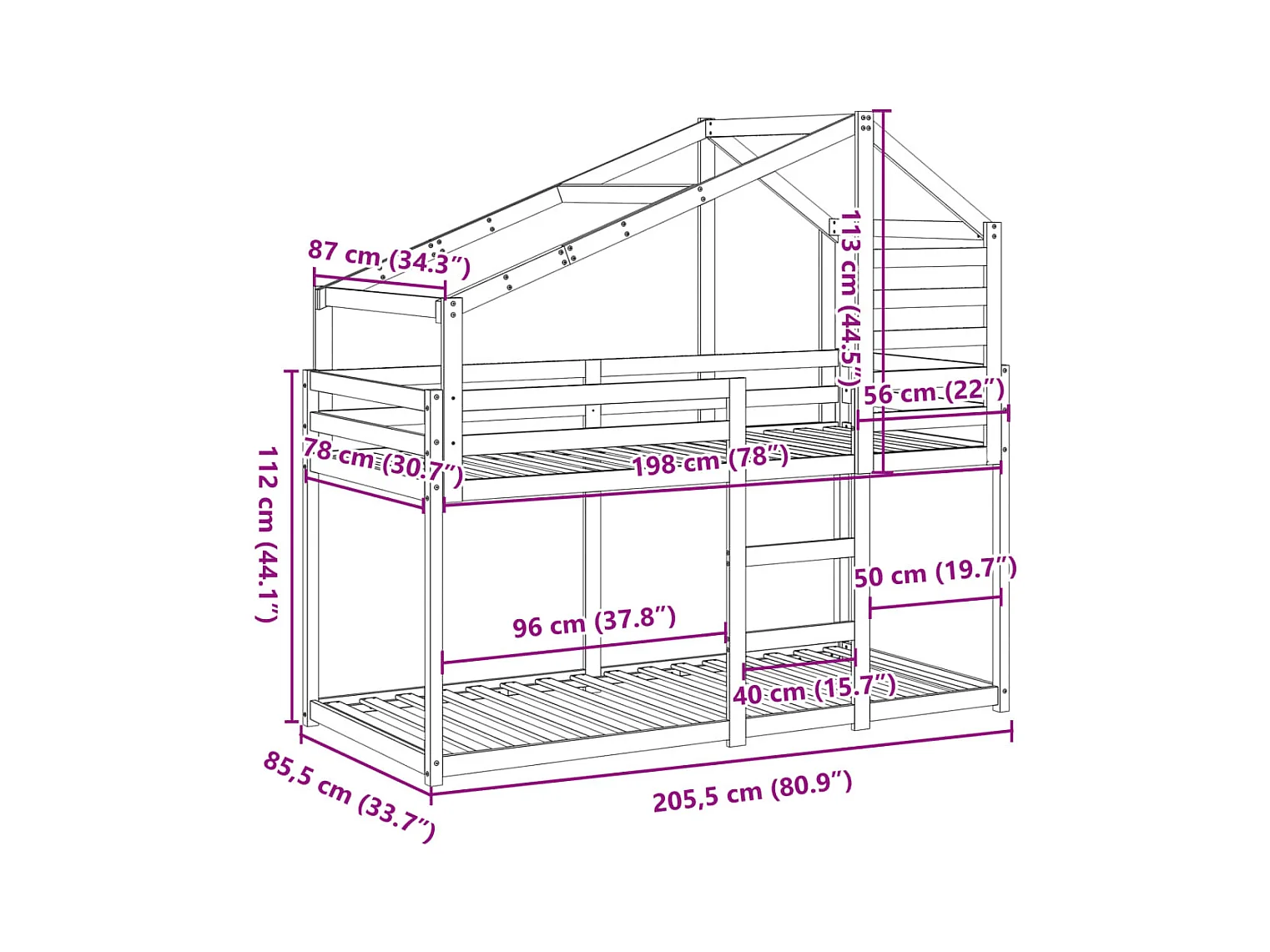 Lit superposé avec échelle et toit sans matelas 80x200 cm