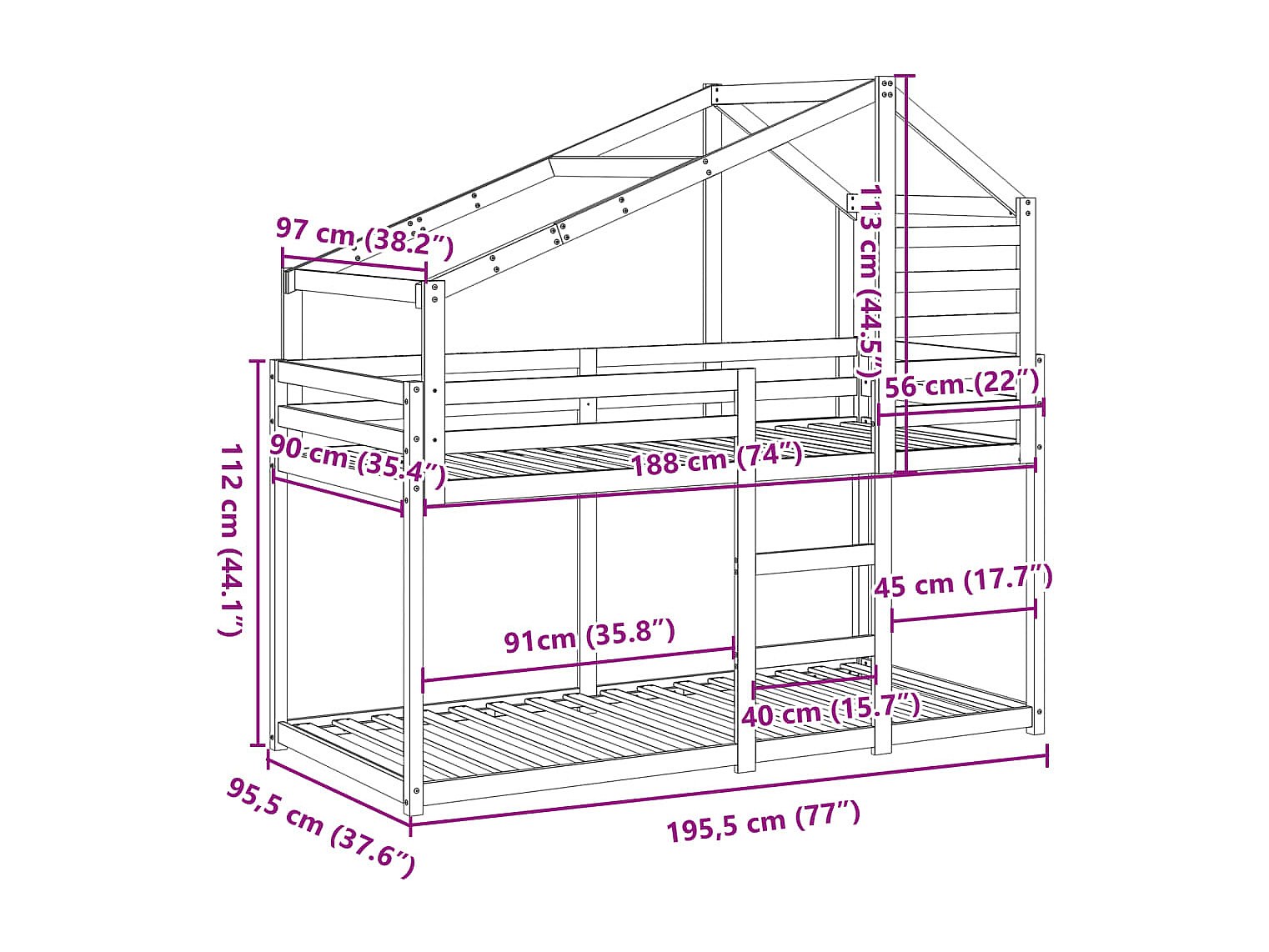 Cadre de lit superposé sans matelas 90x190cm bois de pin massif