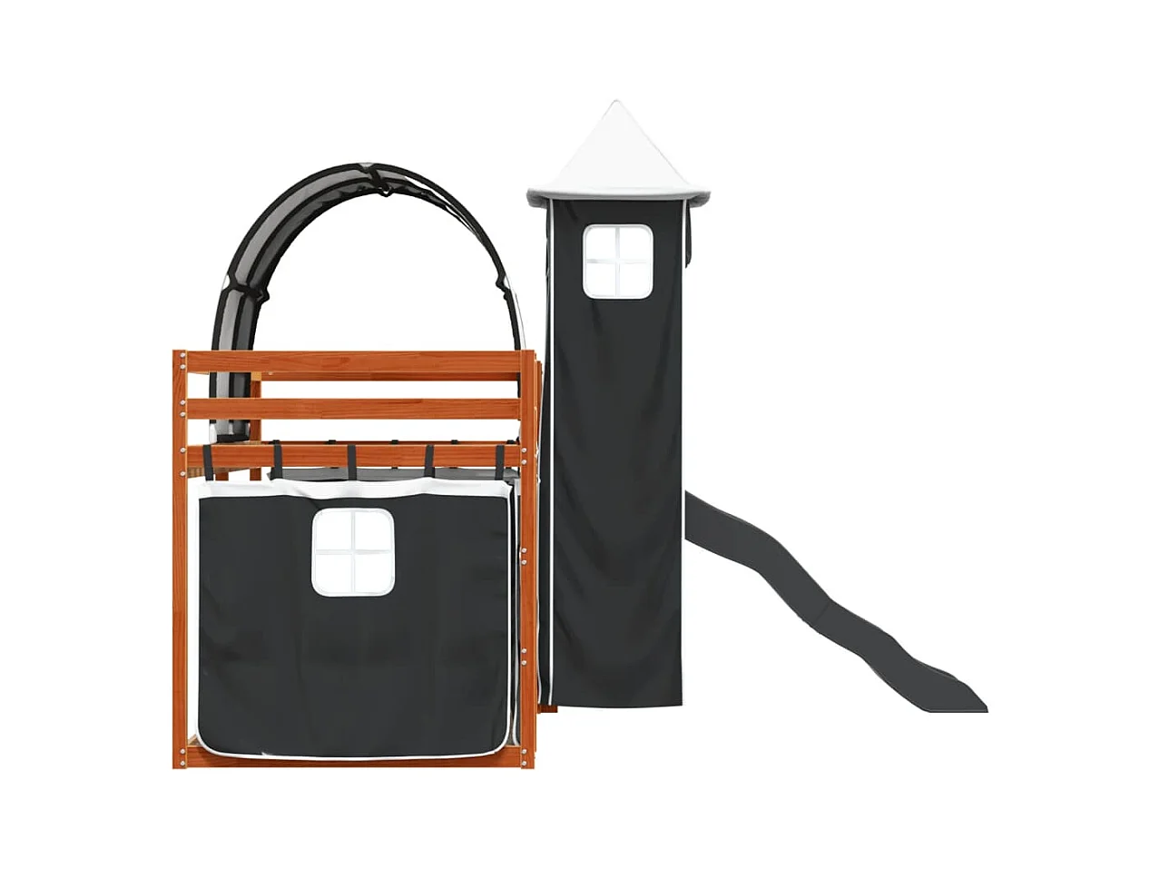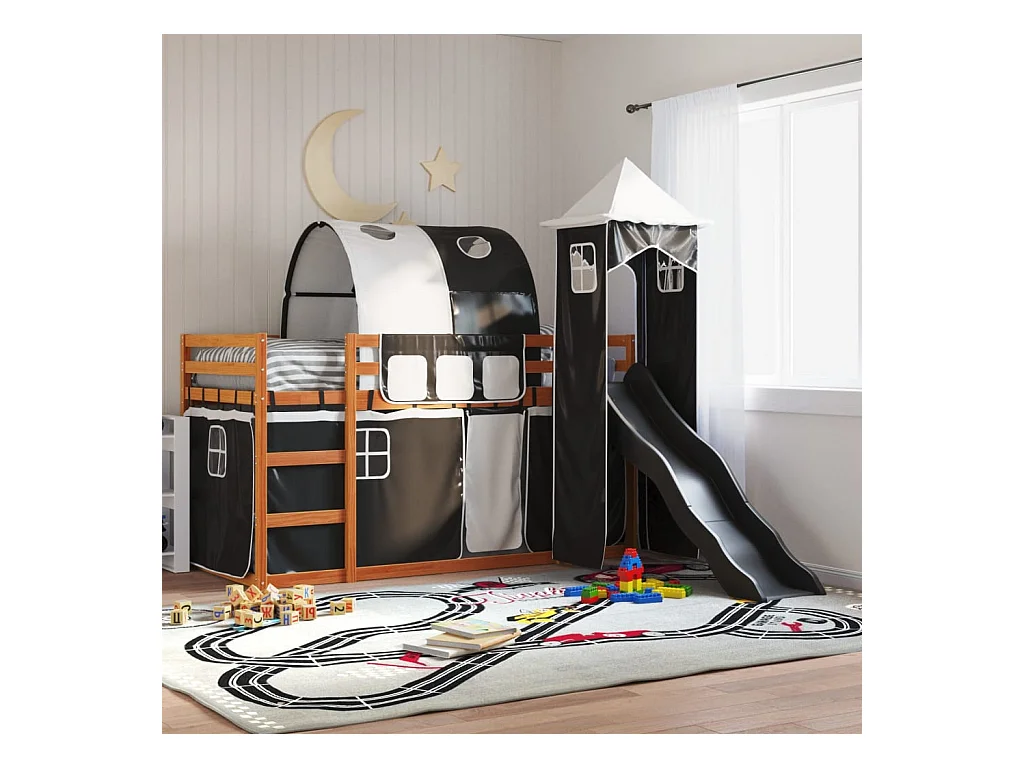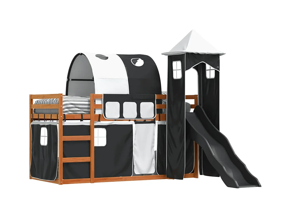 Lit superposé sans matelas avec toboggan blanc noir 90x200 cm