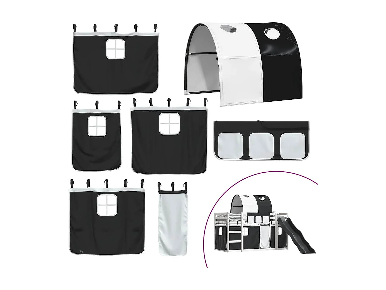 Lit superposé sans matelas avec toboggan blanc noir 90x200 cm