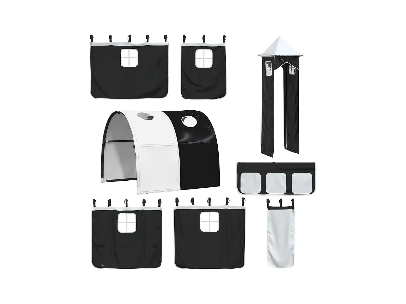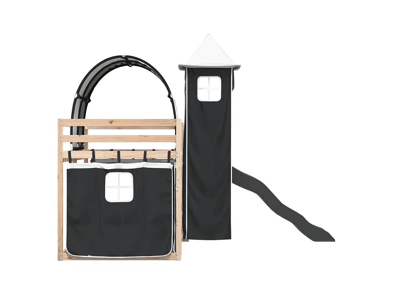 Lit superposé sans matelas avec toboggan blanc noir 90x200 cm