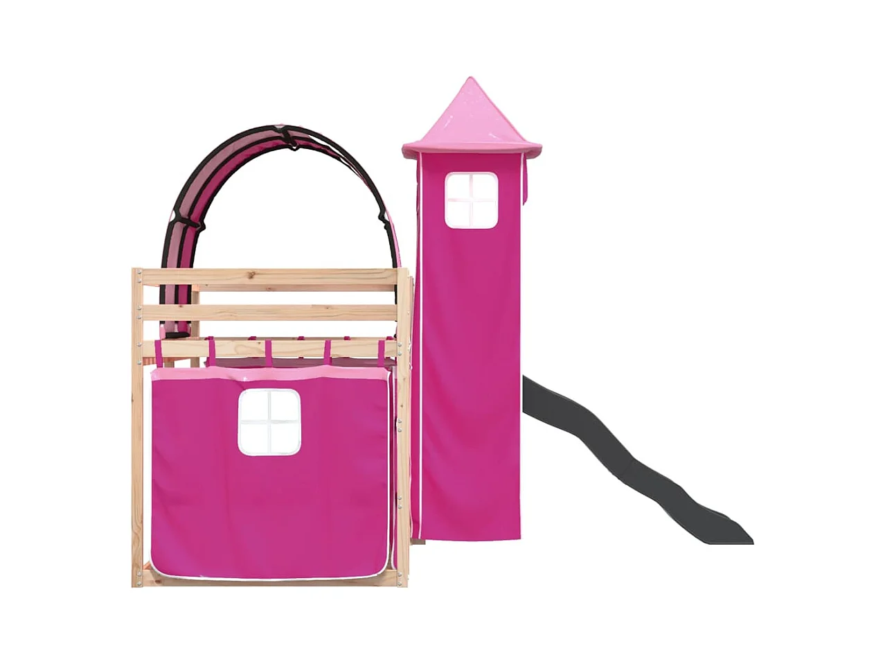 Lit superposé avec toboggan et rideaux rose 90x190 cm FR13046