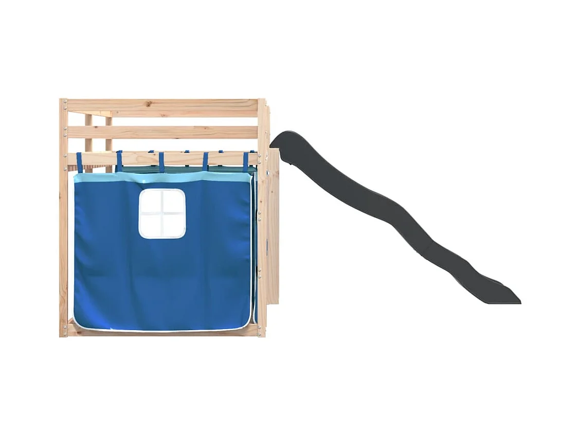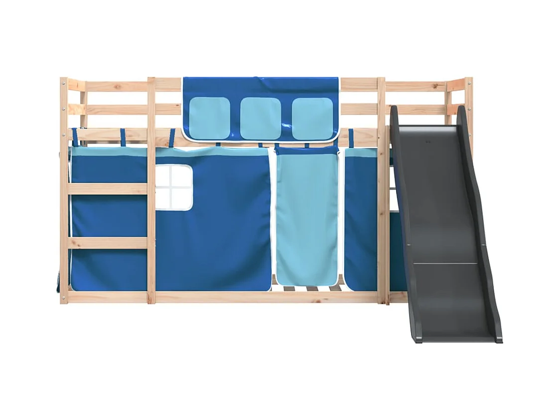 Lit superposé avec toboggan et rideaux bleu 90x190 cm FR84919