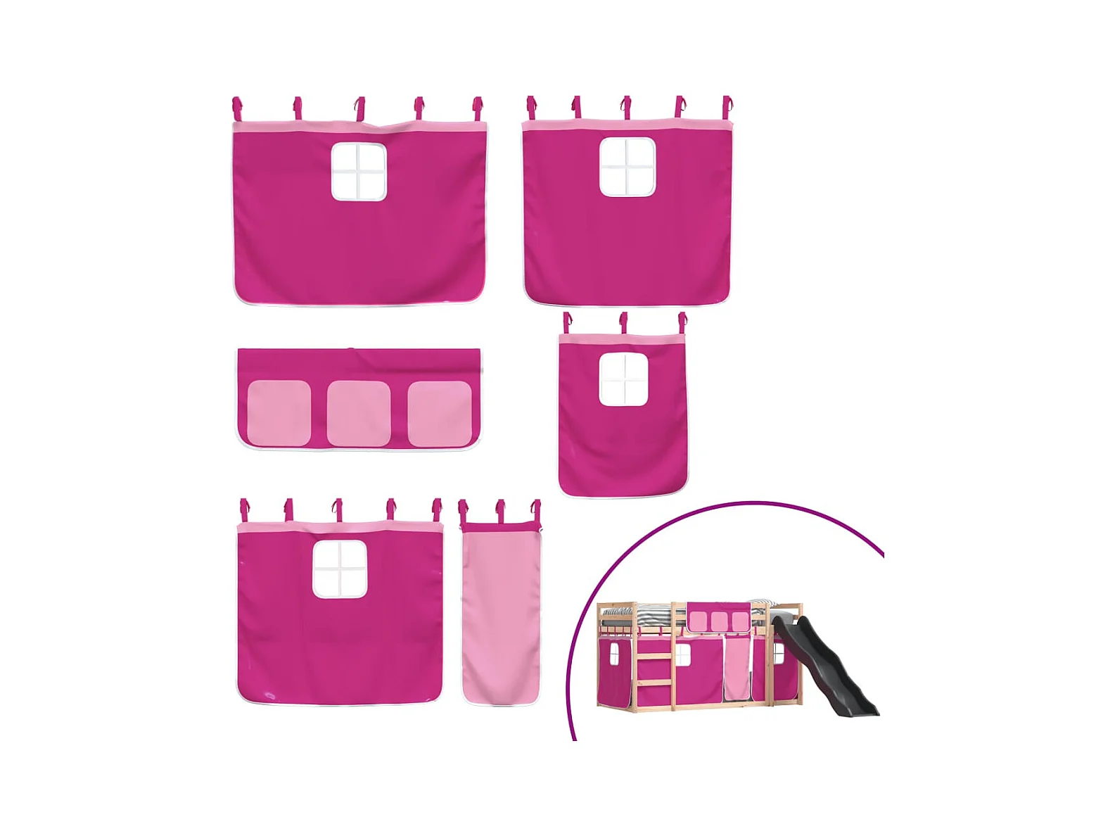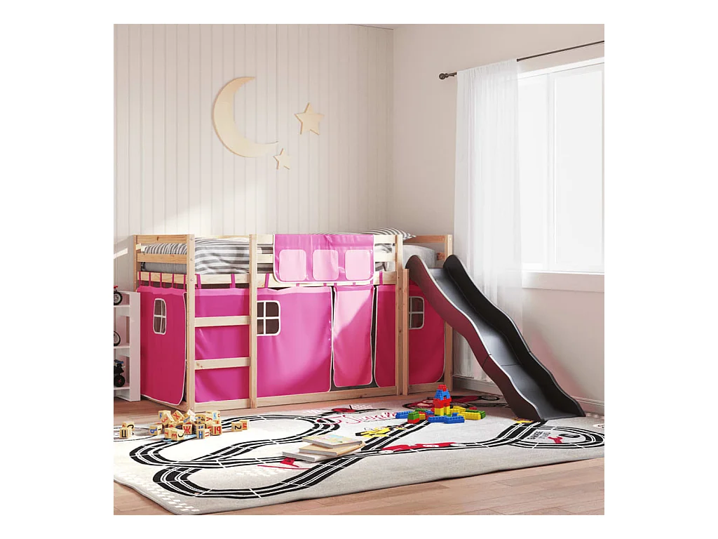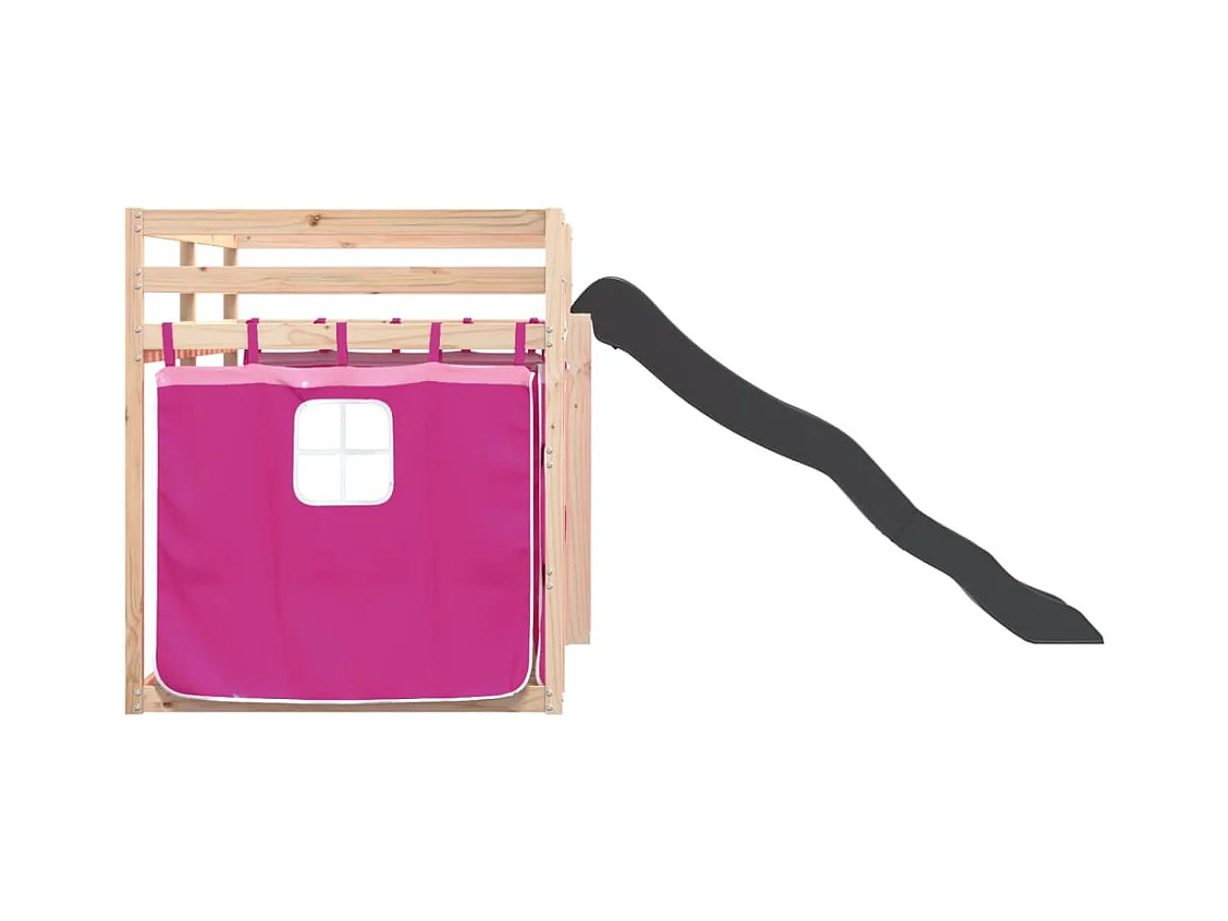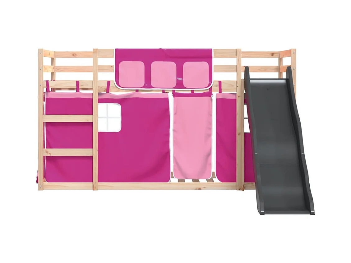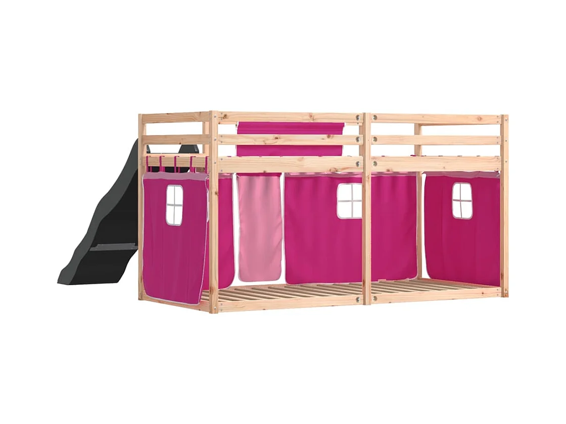 Lit superposé sans matelas avec toboggan et rideaux 90x200 cm