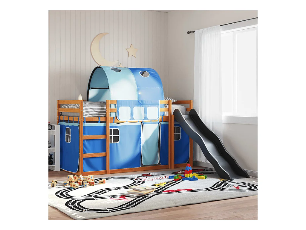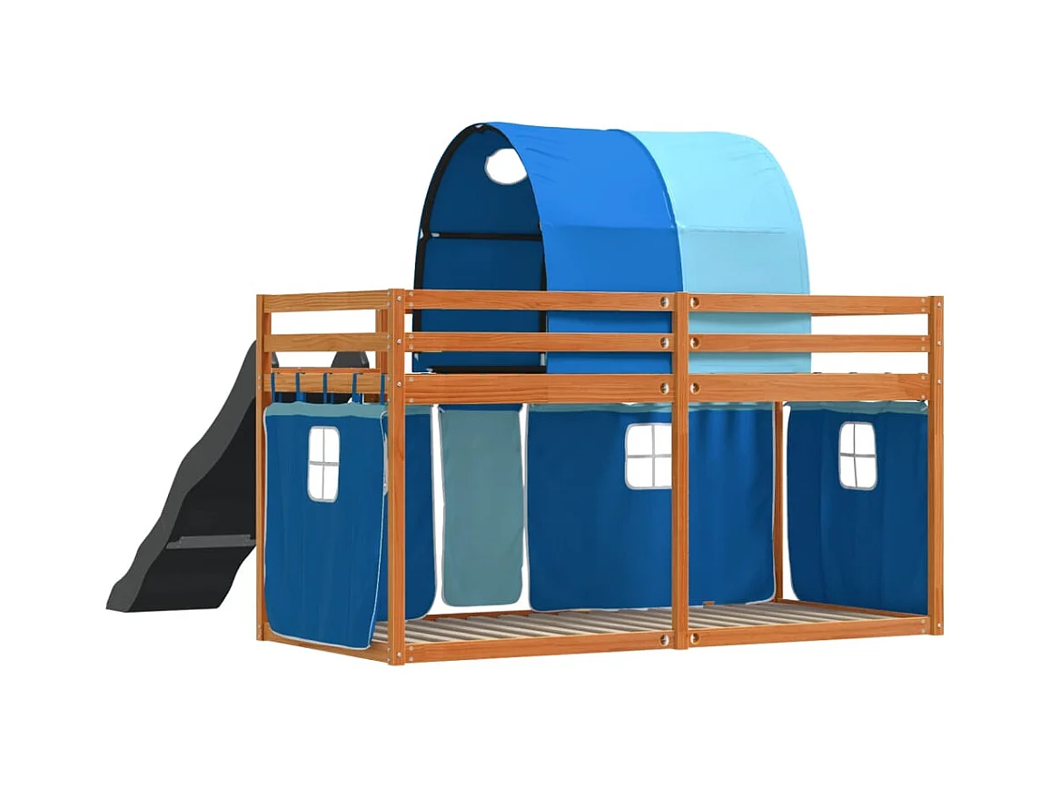 Lit superposé avec toboggan et rideaux bleu 90x200 cm FR25846