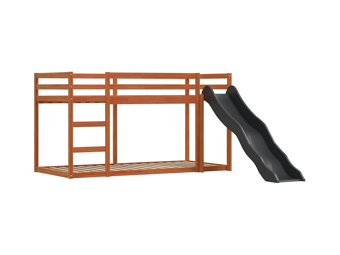 Lit superposé sans matelas avec toboggan et rideaux 90x200 cm