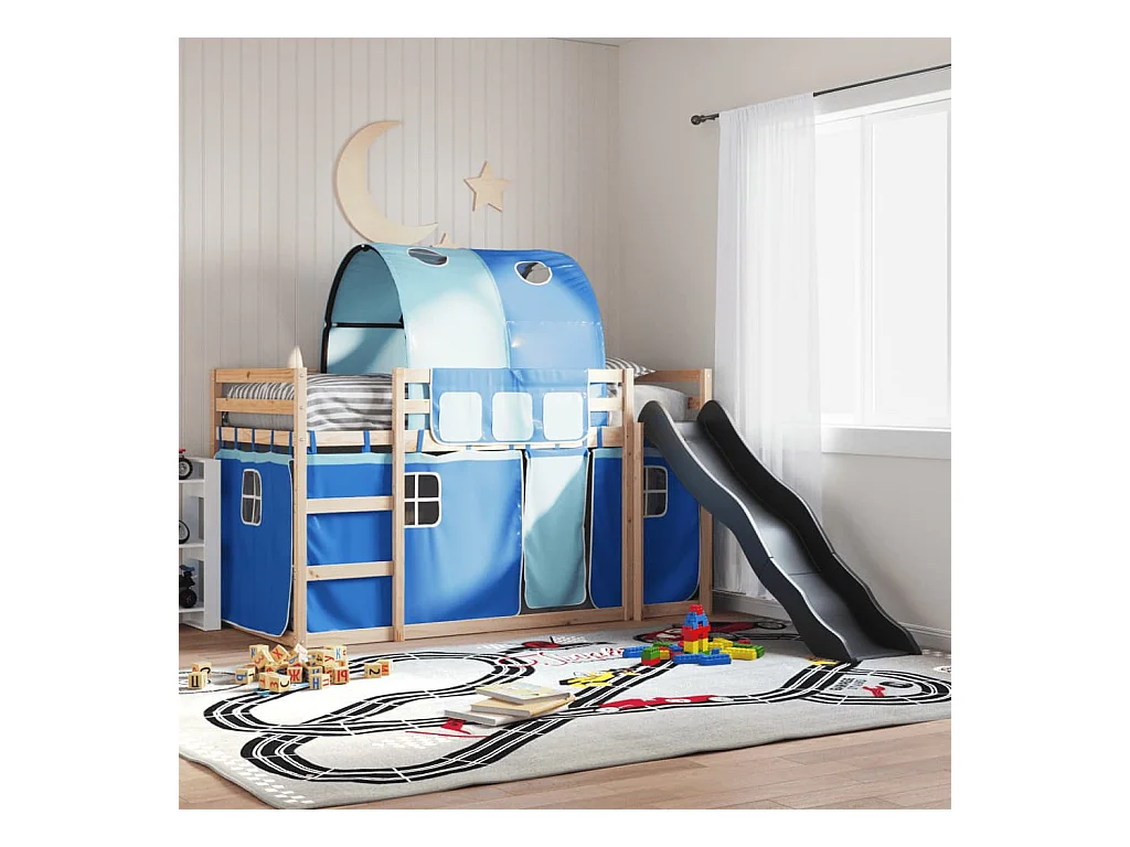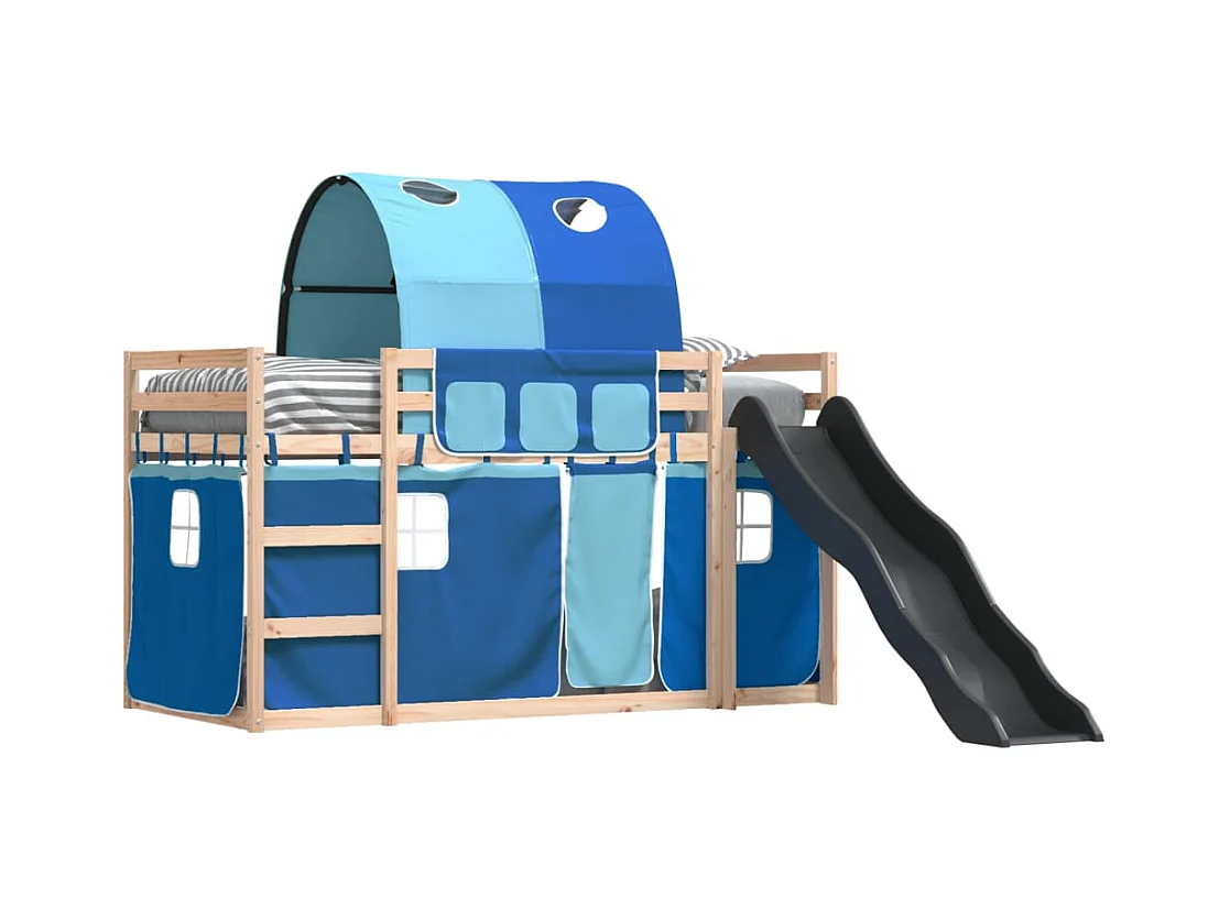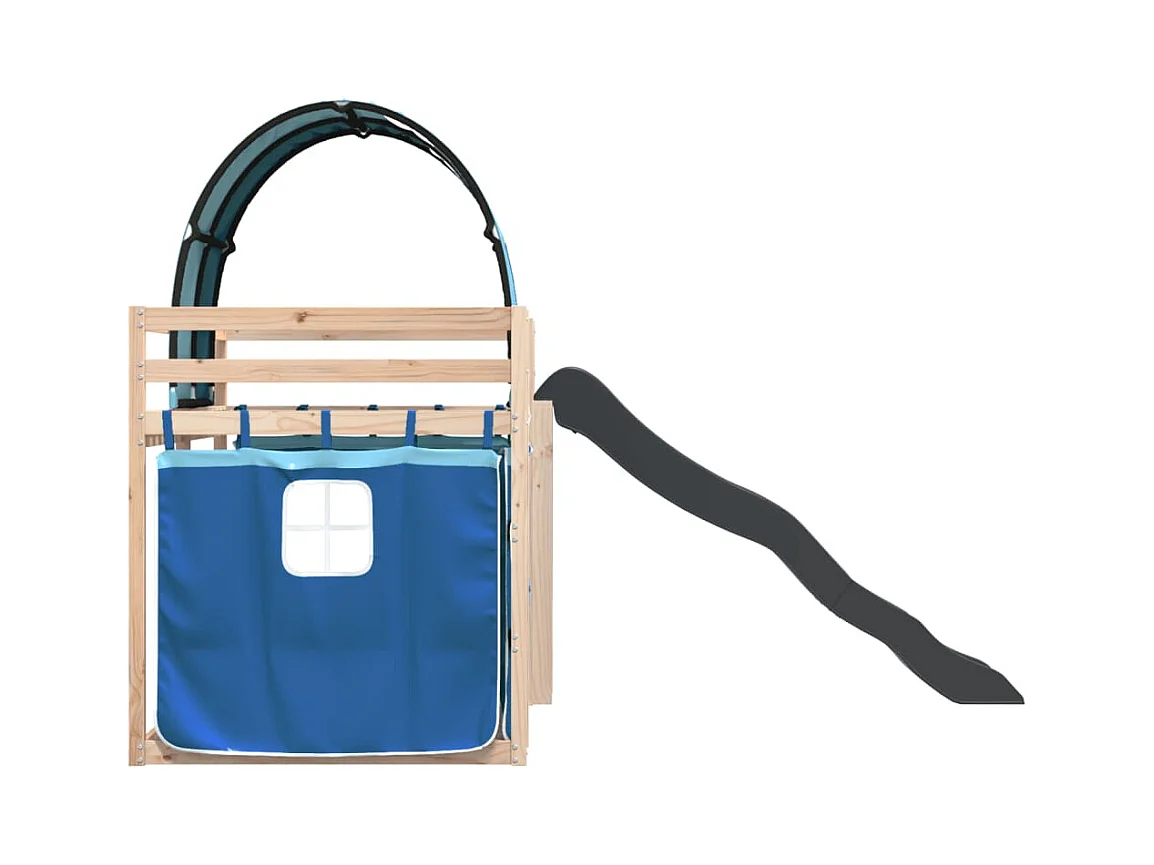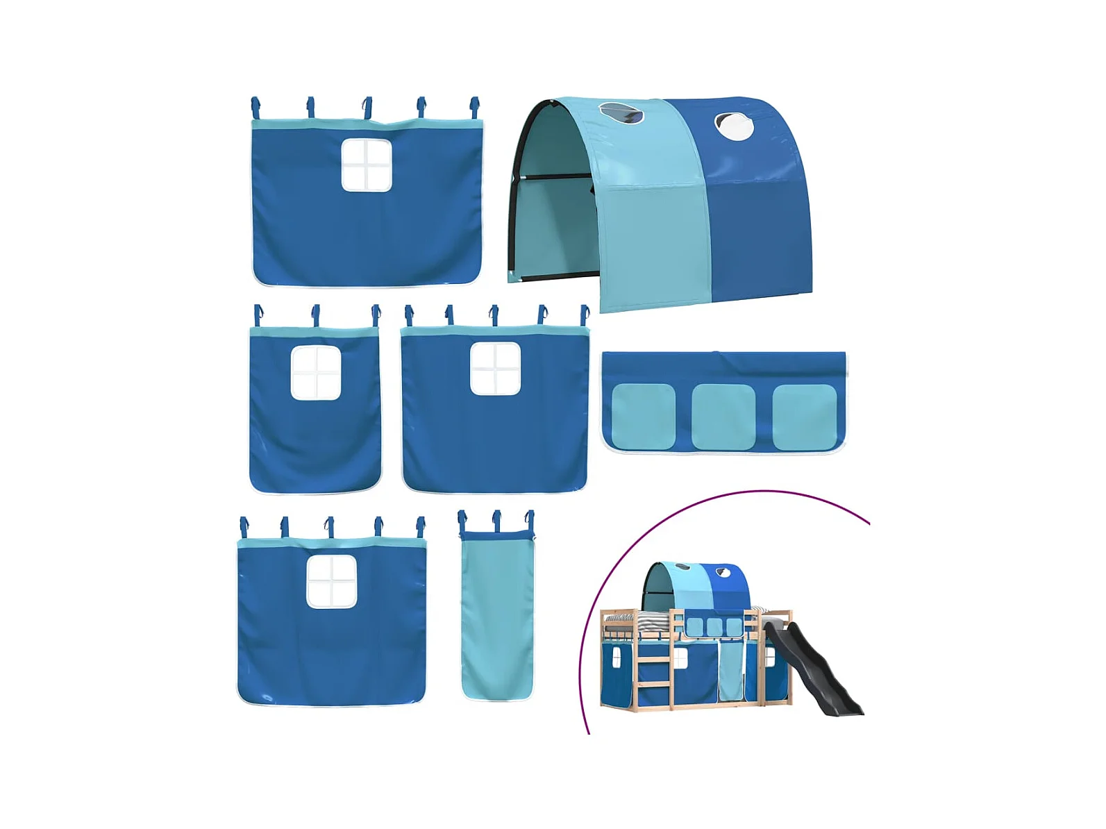 Lit superposé avec toboggan et rideaux bleu 90x200 cm FR25846