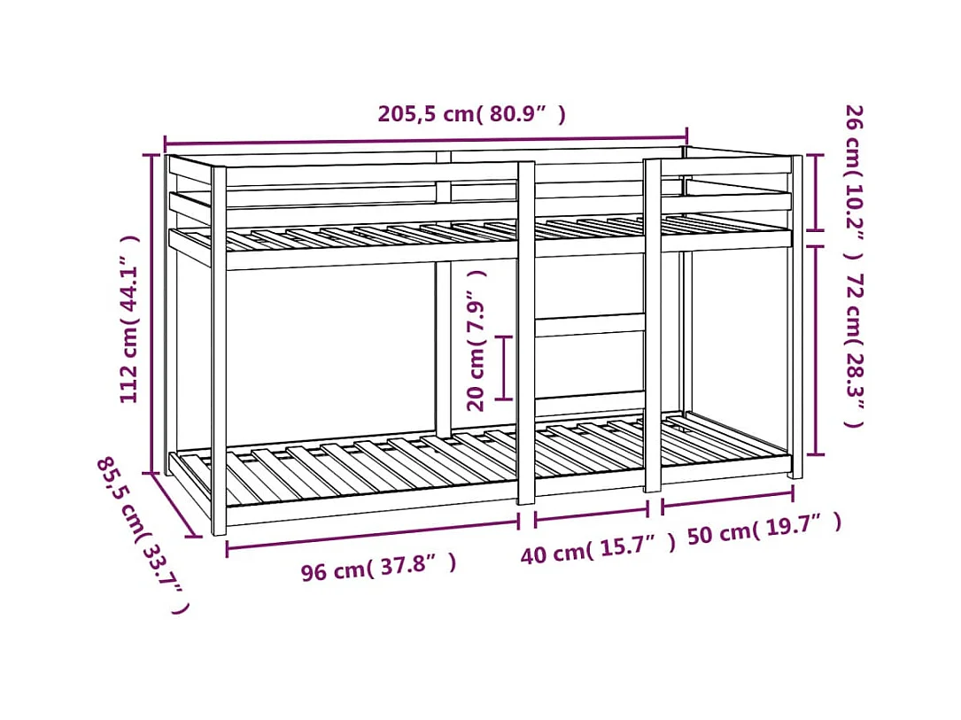Lit superposé sans matelas blanc 80x200 cm bois de pin massif