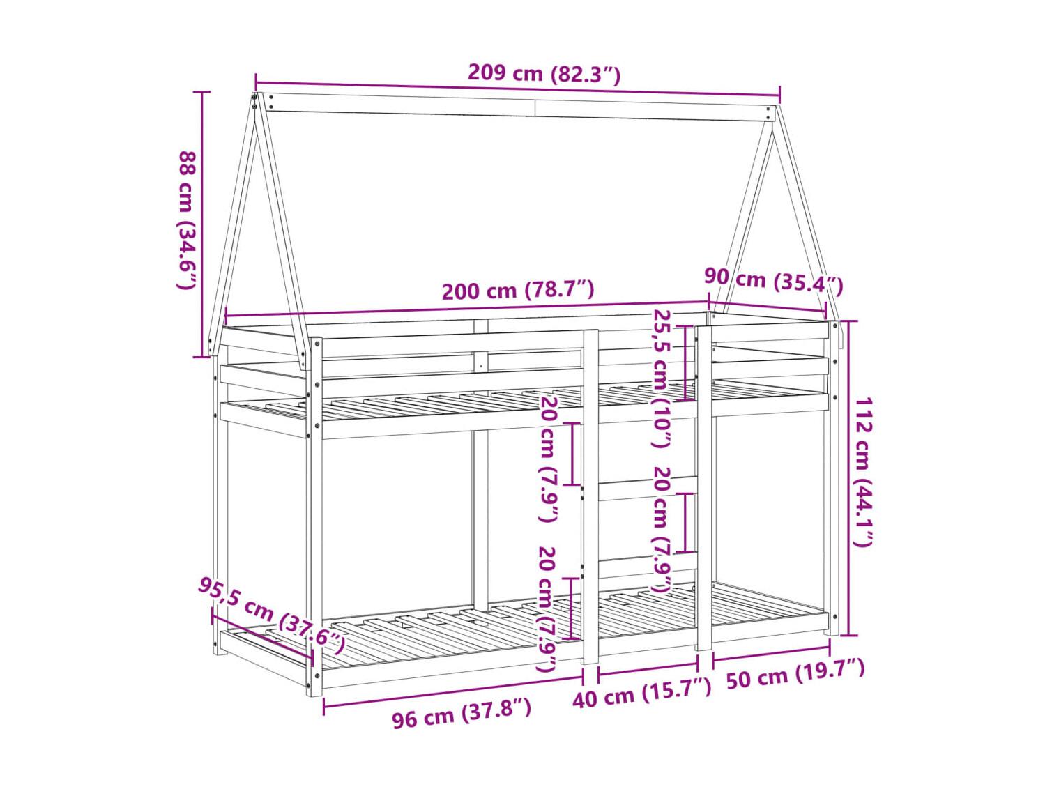 Lit superposé sans matelas blanc 90x200 cm bois de pin massif