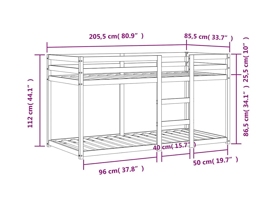 Lit superposé sans matelas 80x200 cm bois de pin massif