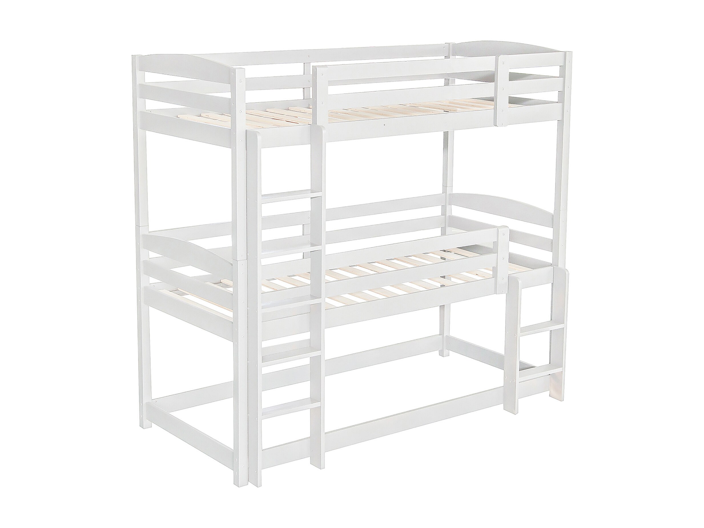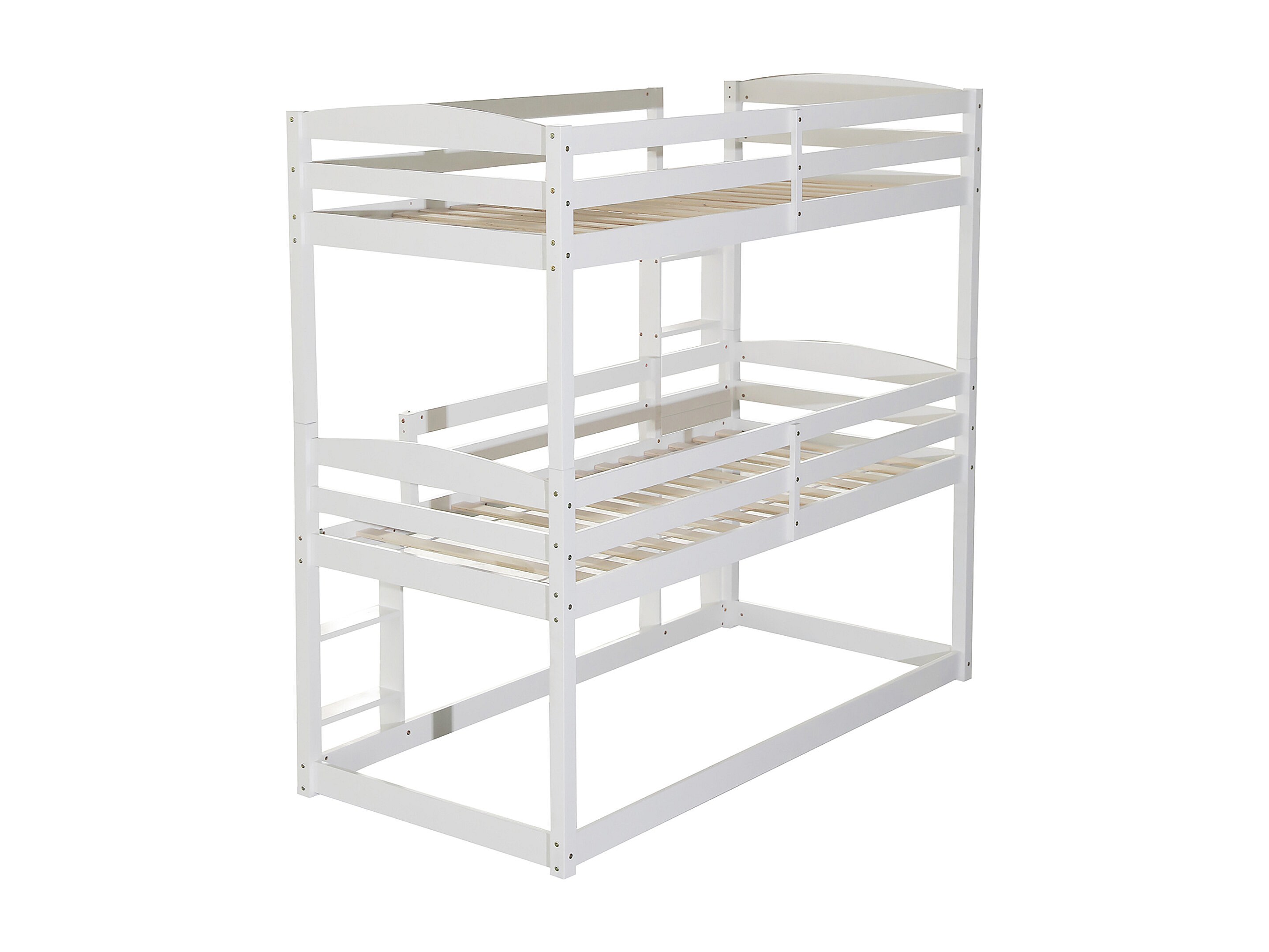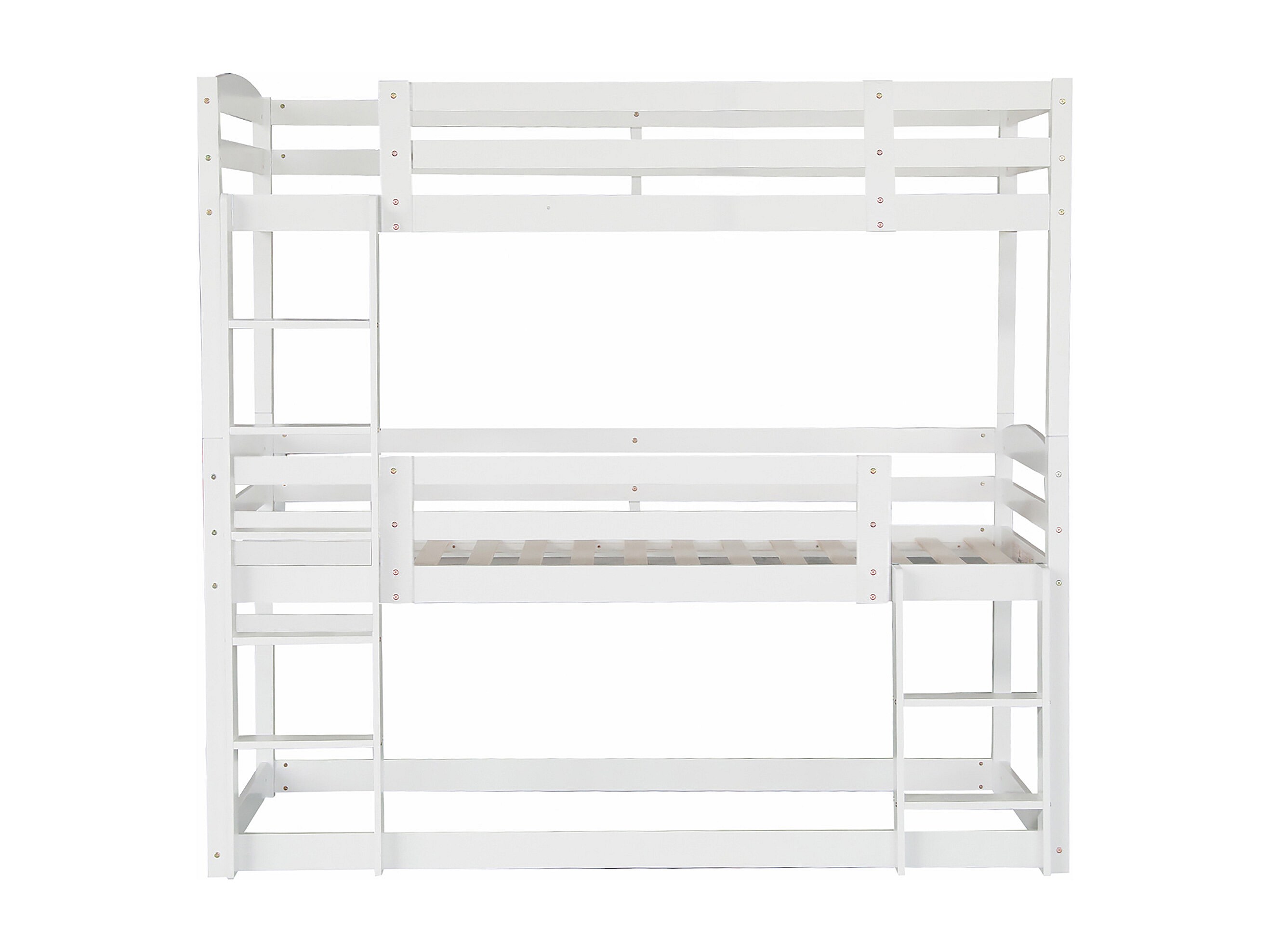 Lit superposé triple 90 x 200 cm - Lit enfant avec escalier et barrière de sécurité - bois blanc - matelas non inclus