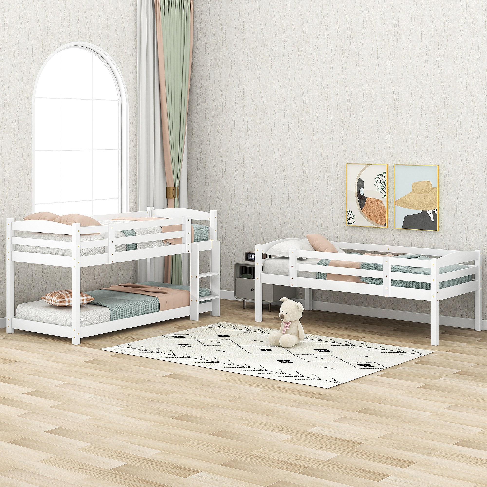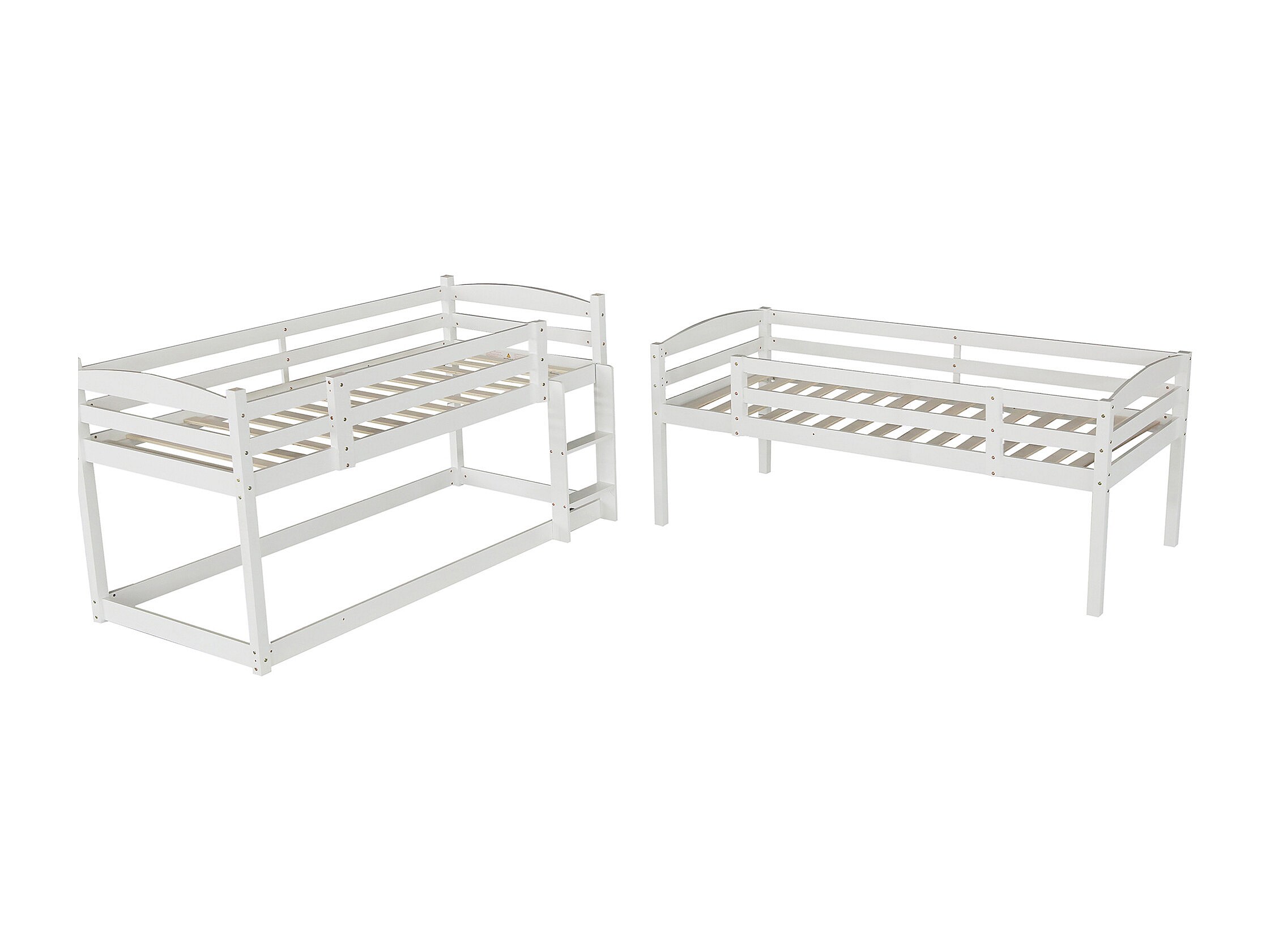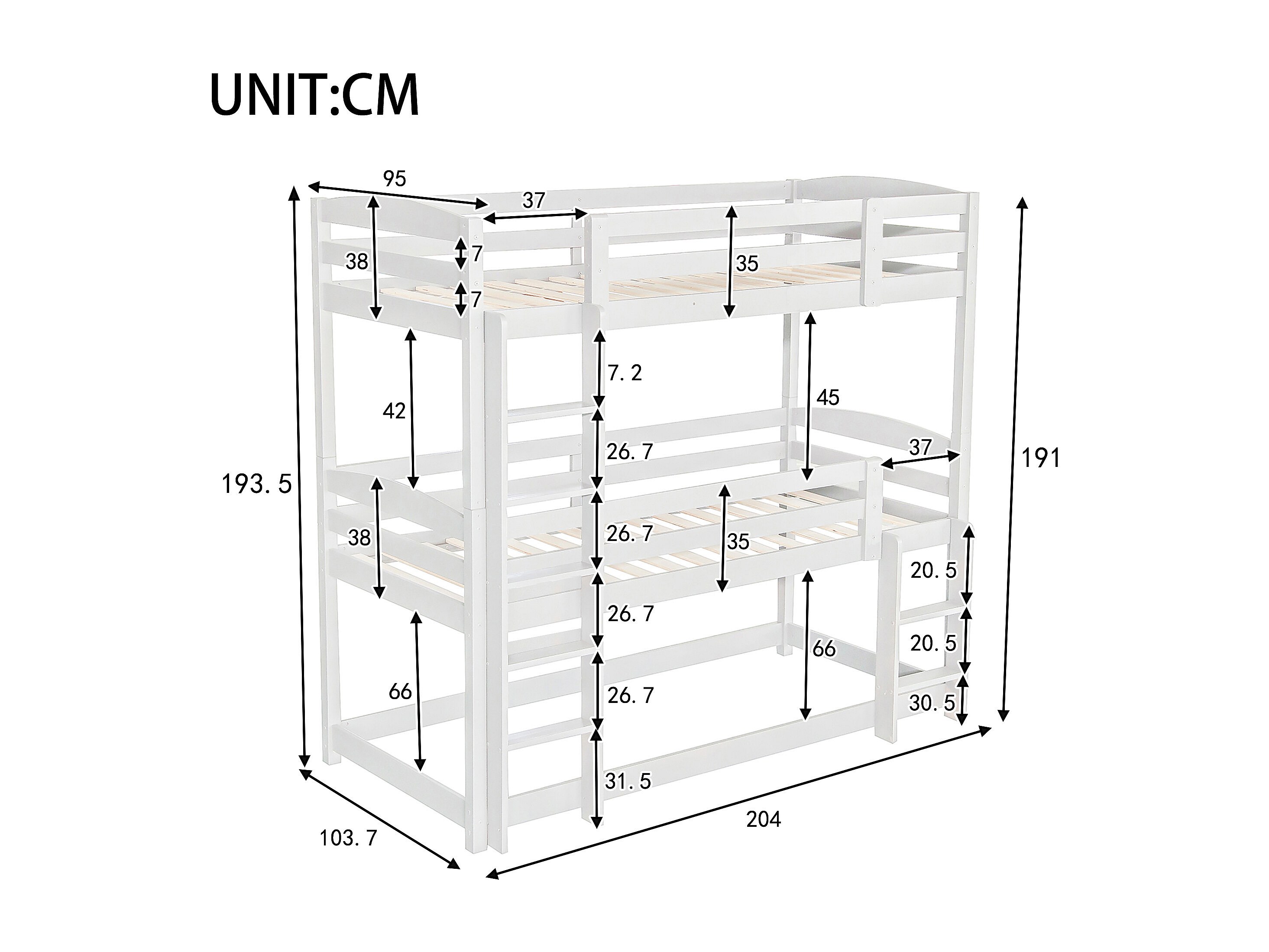 Lit superposé triple 90 x 200 cm - Lit enfant avec escalier et barrière de sécurité - bois blanc - matelas non inclus