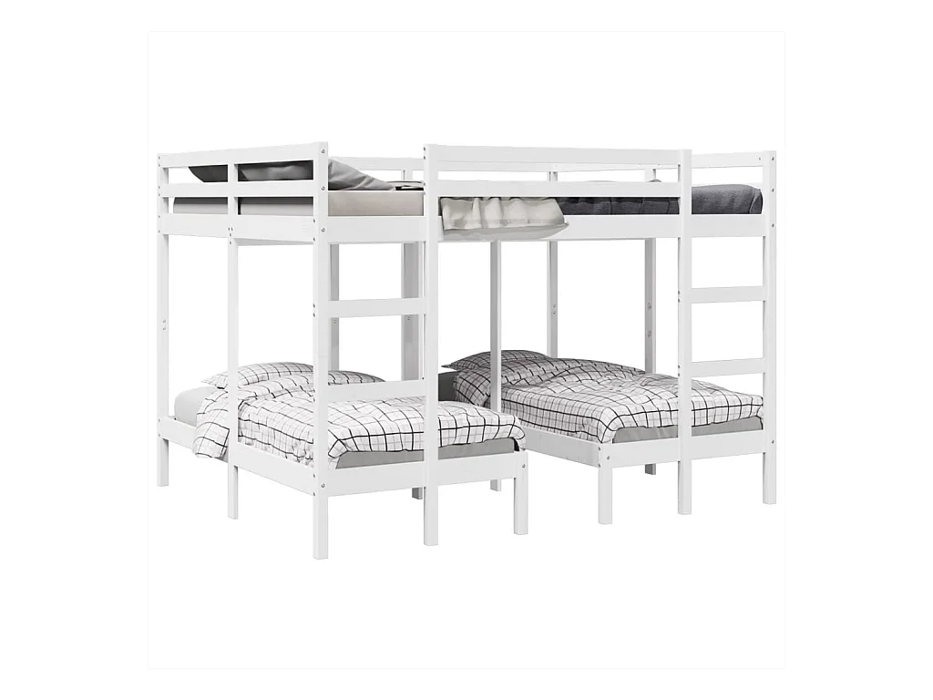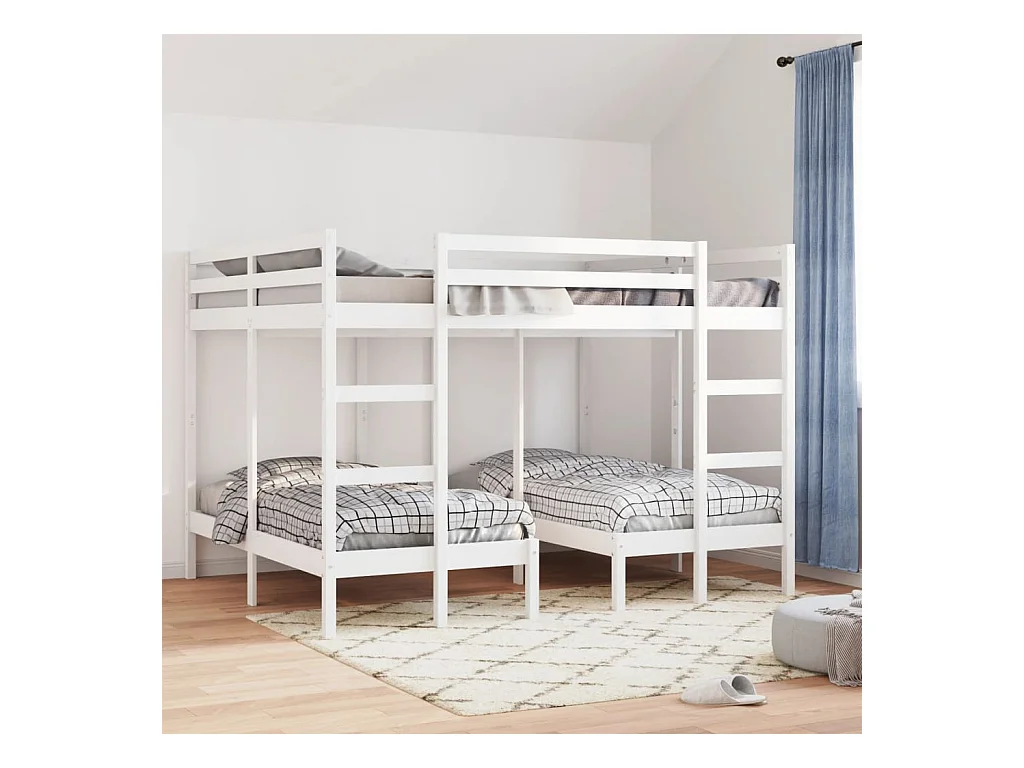 Lit superposé triple blanc 140x200/70x140 cm bois de pin massif