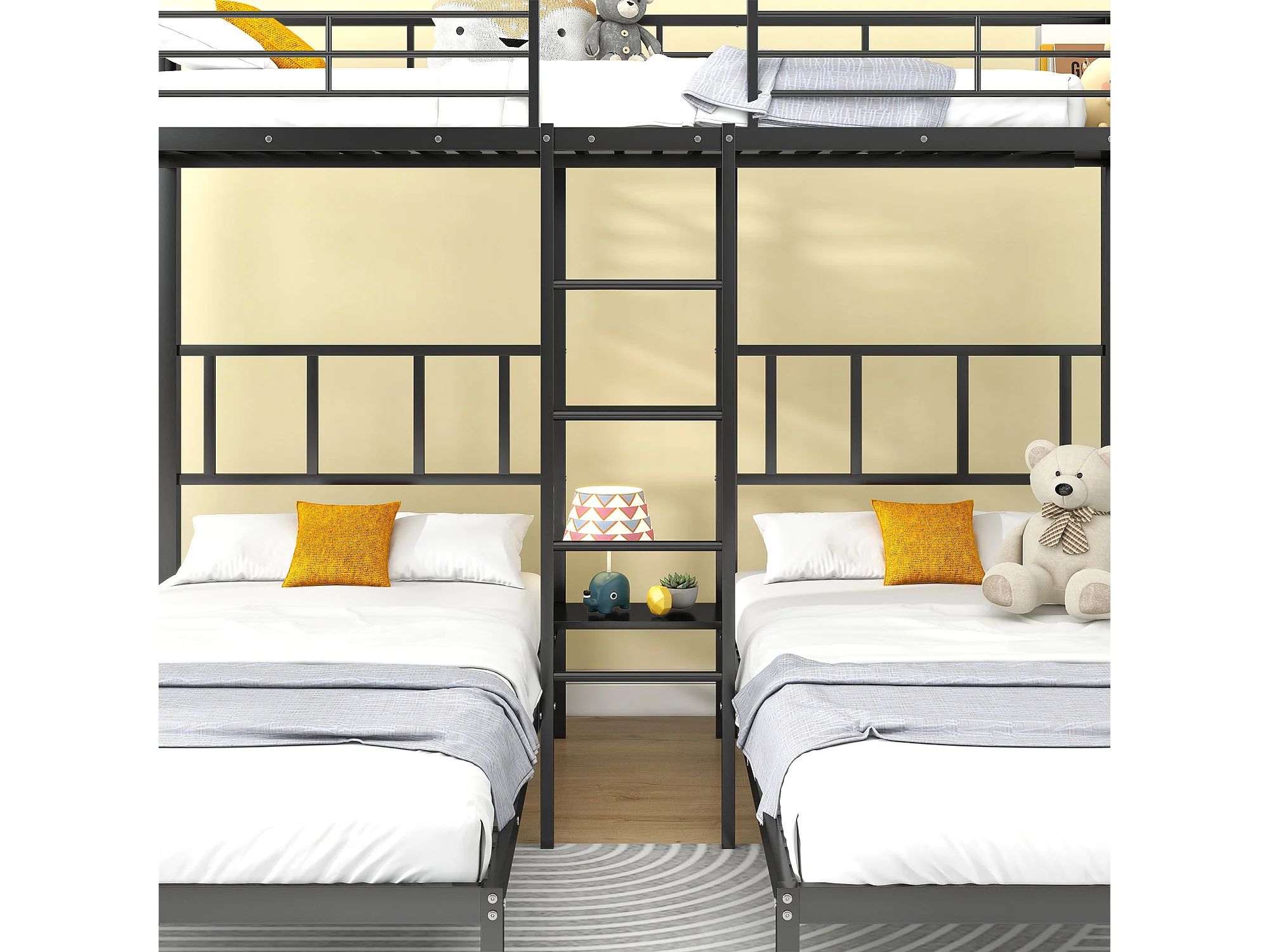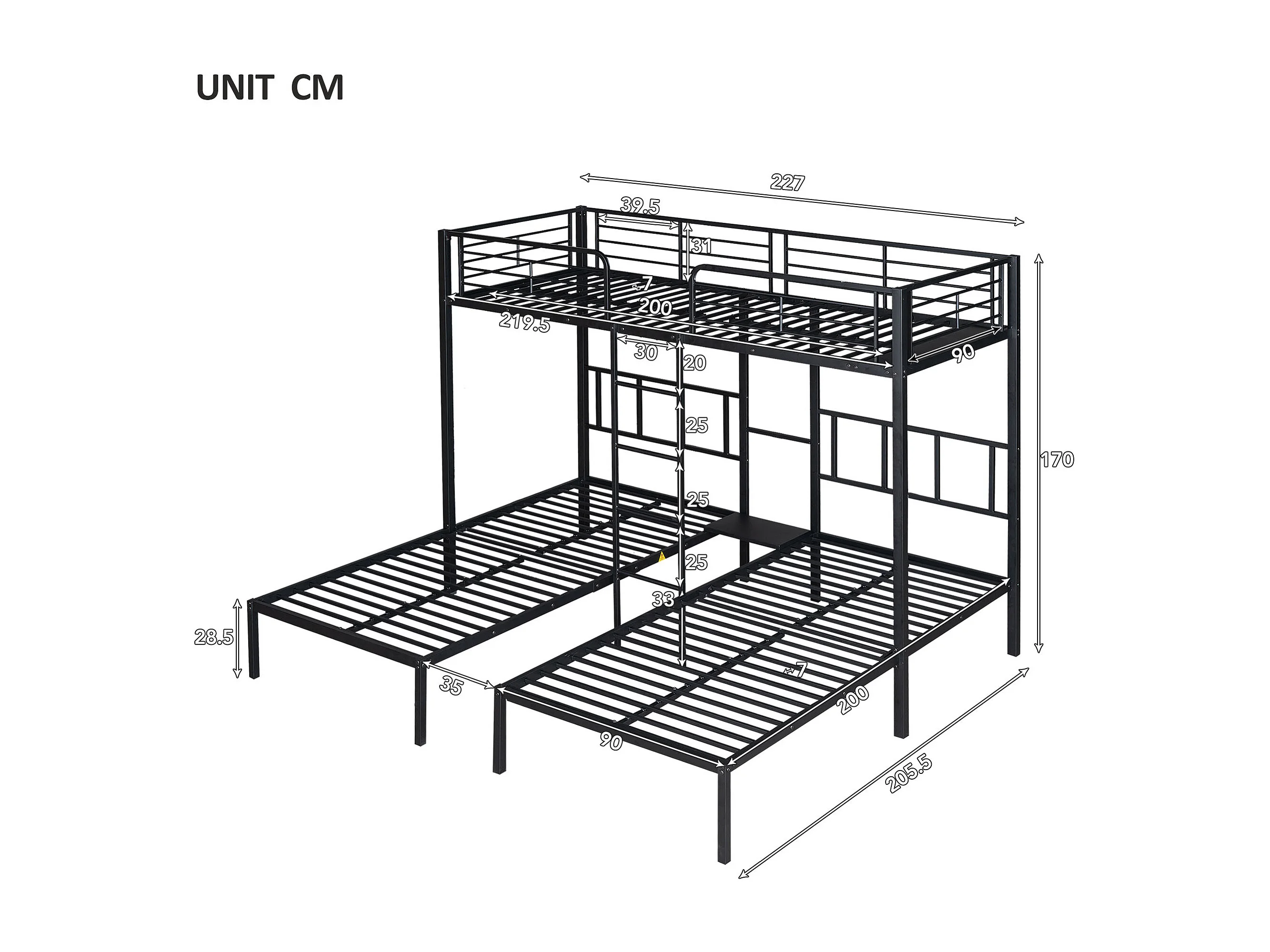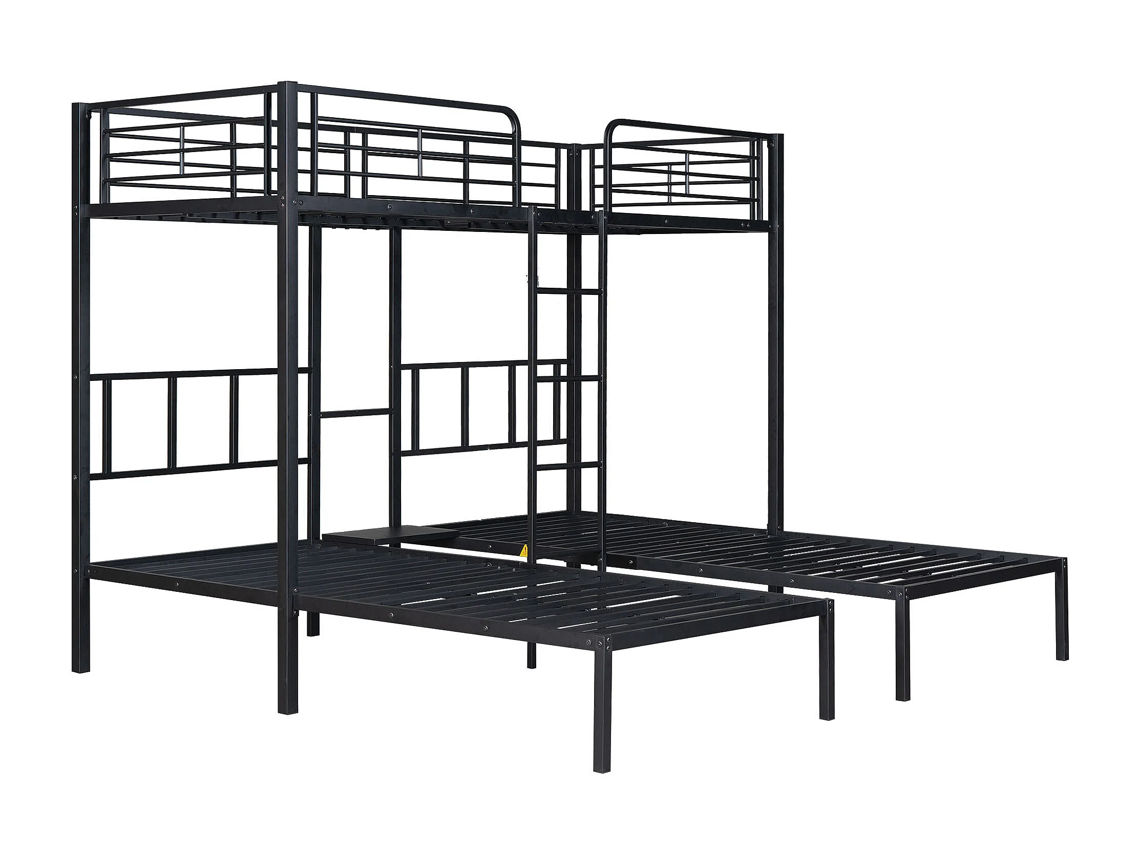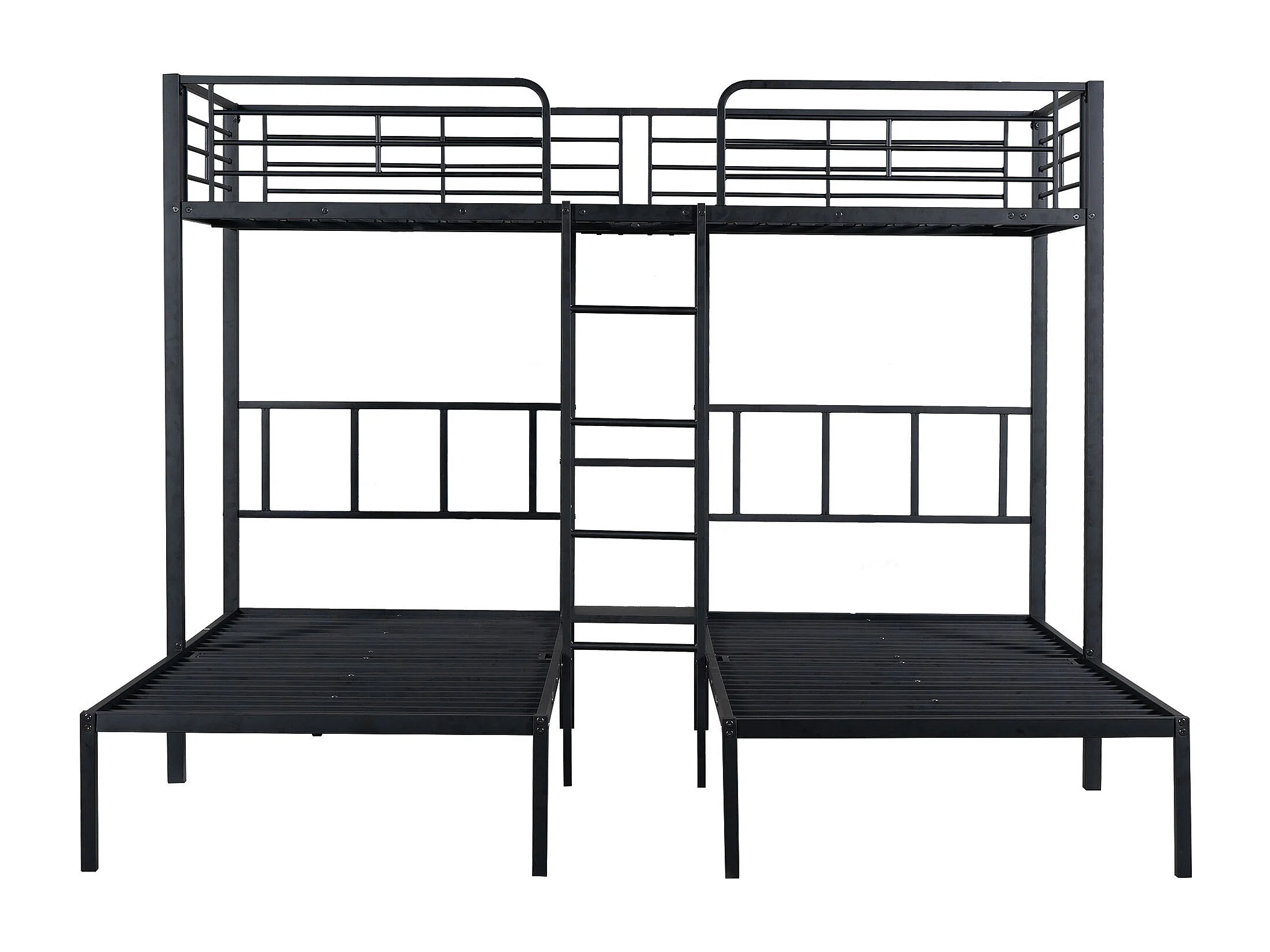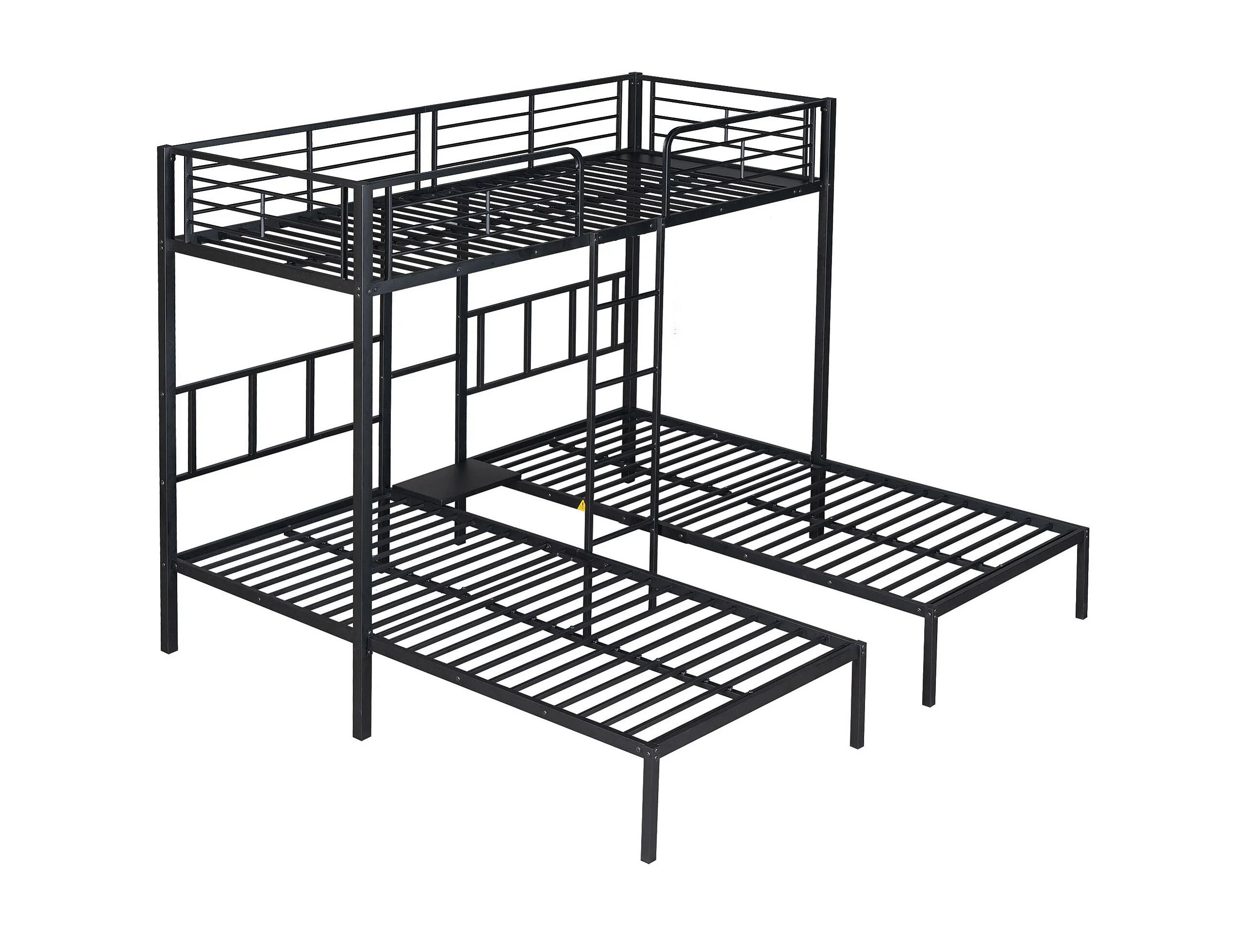 Lit superposé triple pour enfants, 90x200 cm, avec échelle et protection, en métal noir, sans matelas