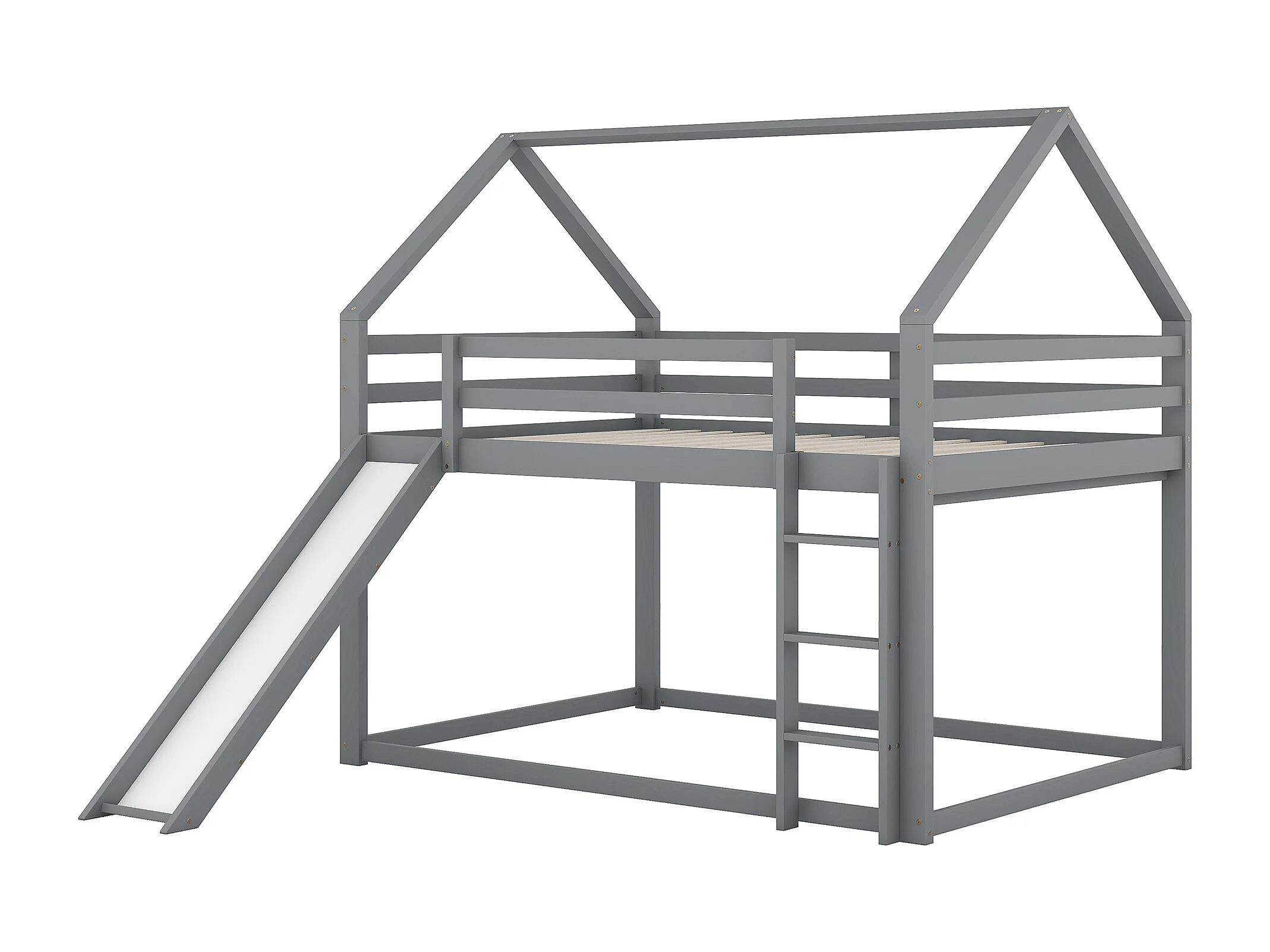 Lit superposés pour enfant - 2 x 140 x 200 cm - avec toboggan + échelle - bois - gris