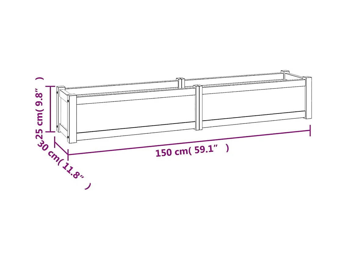 Lit surélevé de jardin doublure 120x45x25 cm bois massif sapin