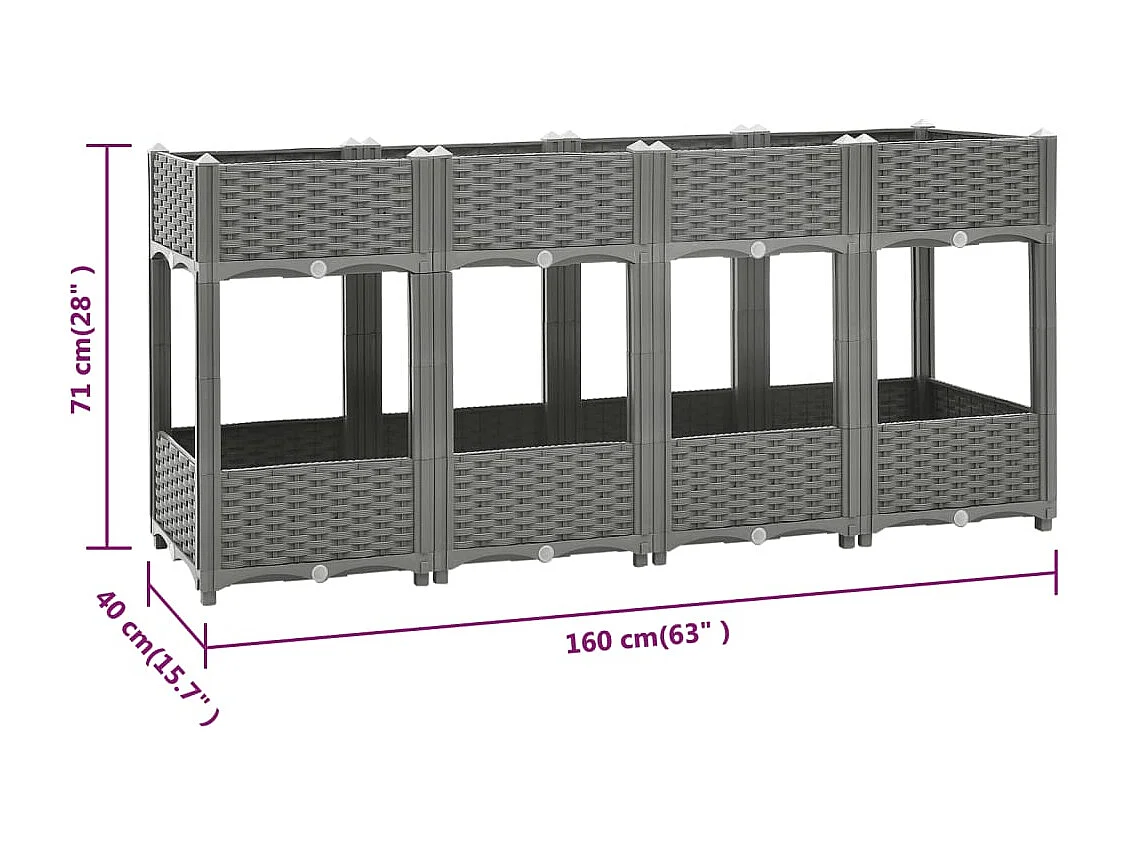 Lit surélevé de jardin Acier enduit de poudre 260x40x36 cm gris