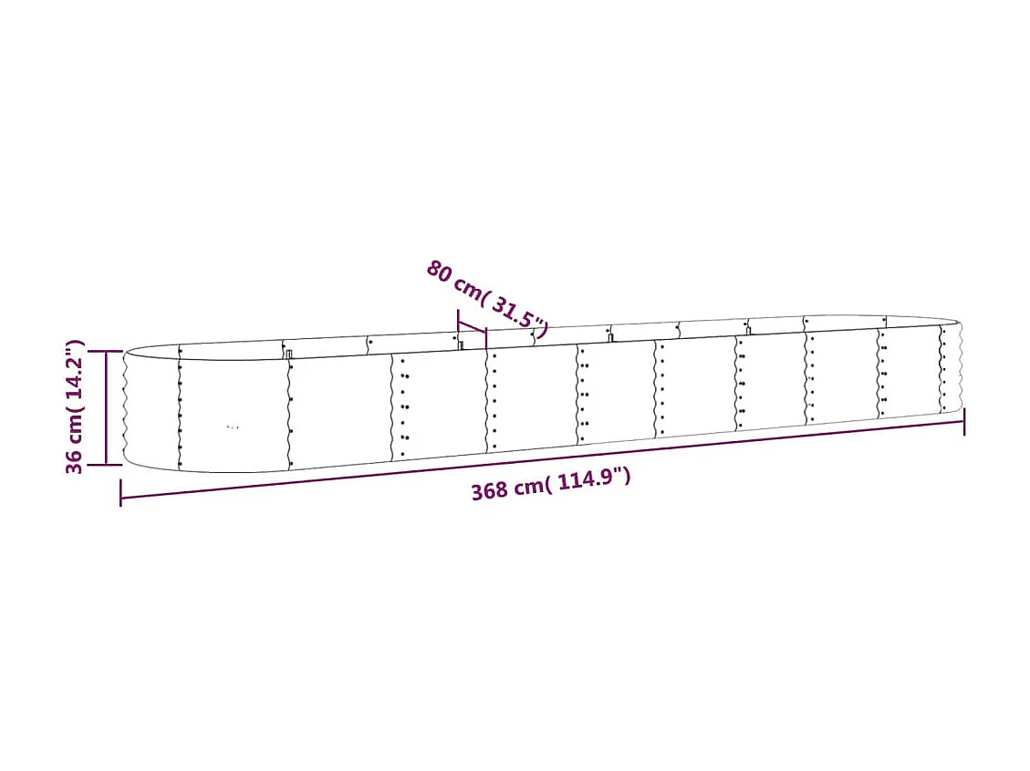 Lit surélevé de jardin Acier enduit de poudre 368x80x36 cm Vert