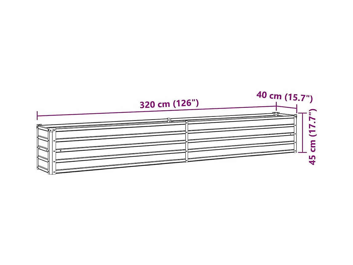 Lit surélevé de jardin Acier galvanisé 320x40x45 cm Marron