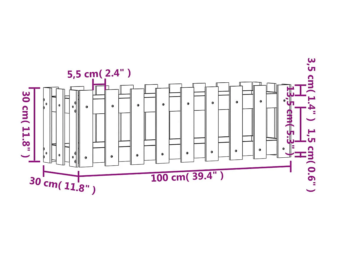 Lit surélevé de jardin design de clôture 100x30x30cm pin massif