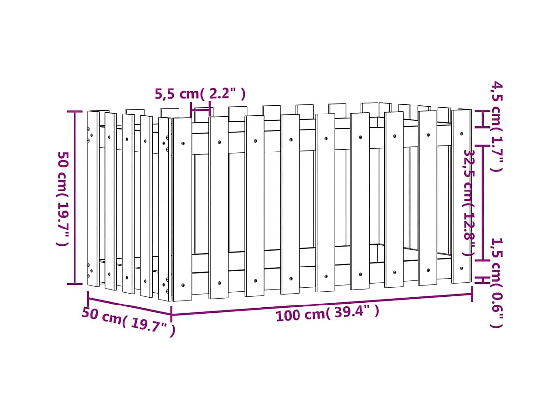 Lit surélevé de jardin design de clôture 100x50x50cm pin massif