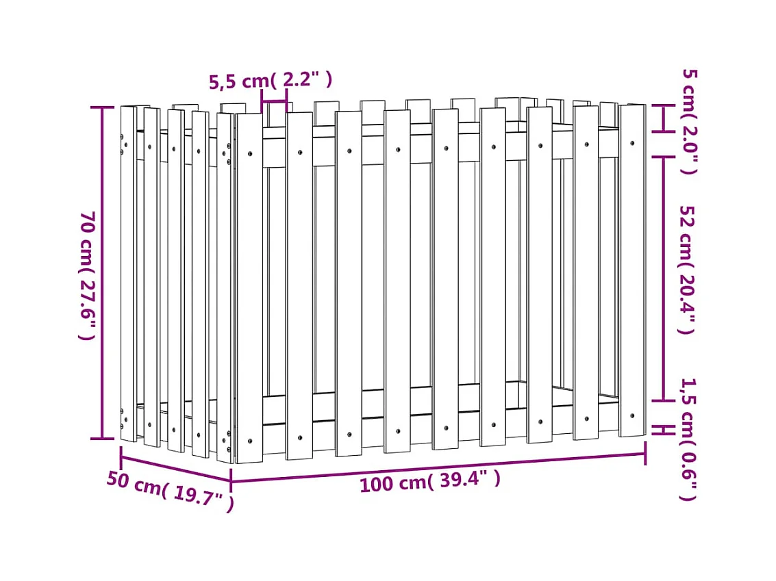 Lit surélevé de jardin design de clôture 100x50x50cm pin massif