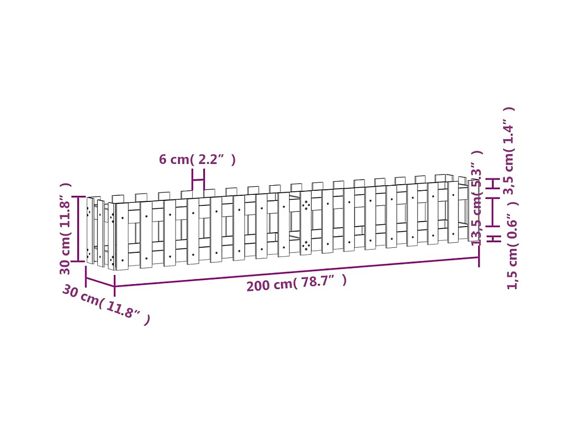 Lit surélevé de jardin design de clôture 200x30x30cm pin massif