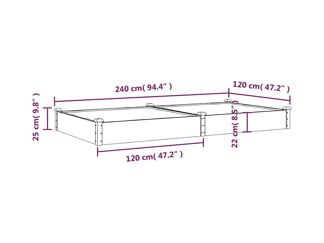 Lit surélevé de jardin doublure 240x120x25 cm bois massif sapin